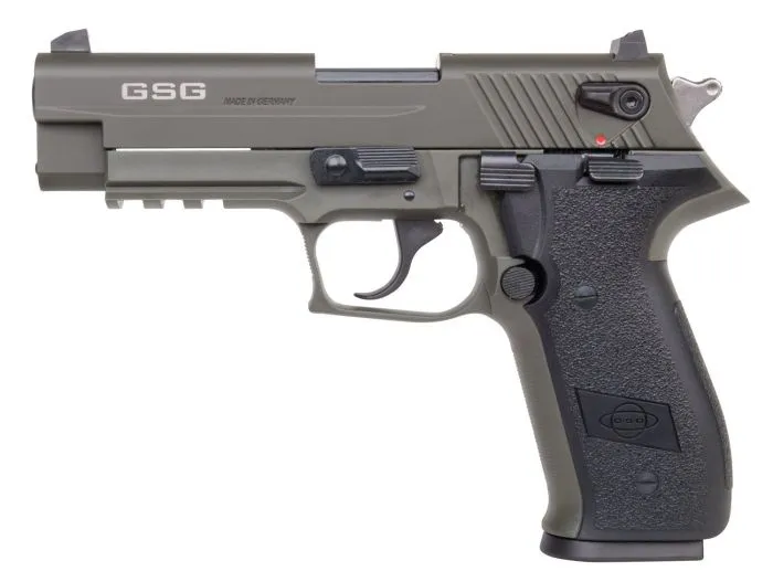 The American Tactical GSG Firefly is a reliable and affordable semi-automatic pistol chambered in 22 LR, perfect for recreational shooting, training, and plinking. Featuring a durable alloy frame with black polymer grips, this pistol is lightweight at only 24.6 ounces, making it highly maneuverable for shooters of all skill levels. The 4-inch barrel and adjustable rear sights ensure accuracy, while the OD Green finish offers a stylish, modern appearance. Sporting a 10+1 capacity, the Firefly combines style and functionality at an accessible price point.