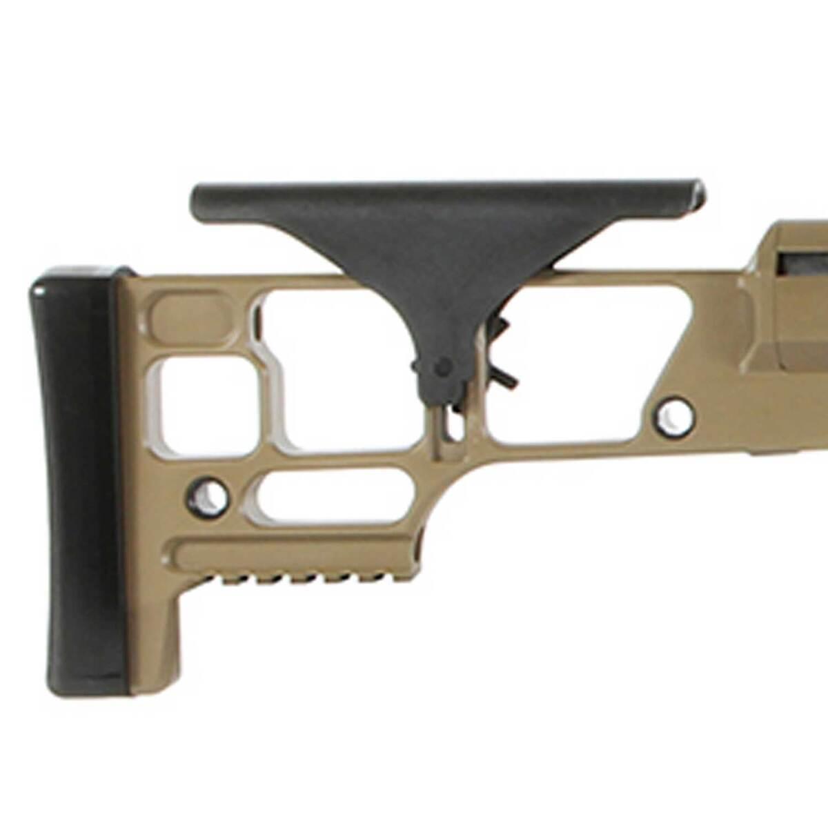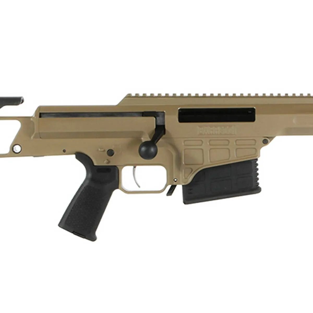 The Barrett MRAD SMR in 338 Lapua Magnum with Flat Dark Earth Cerakote finish delivers precision and modularity designed for demanding shooting applications. Equipped with a fluted 26-inch barrel, this bolt-action rifle is built for reliability in challenging environments. Key features include a fully adjustable match-grade trigger module for customized pull settings, a fixed stock for sturdy shooting posture, and a modular M-Lok compatible upper receiver for custom accessory configurations. Additionally, the polymer cheek piece is adjustable for perfect optical alignment while offering reversible profiles, and the safety selector provides user-friendly functionality with minimal grip disturbance. The MRAD SMR integrates a muzzle brake with thread protector to ensure suppressor compatibility and optimal performance. Ideally suited for precision shooters, hunters, and tactical operators, this rifle embodies cutting-edge firearm technology.