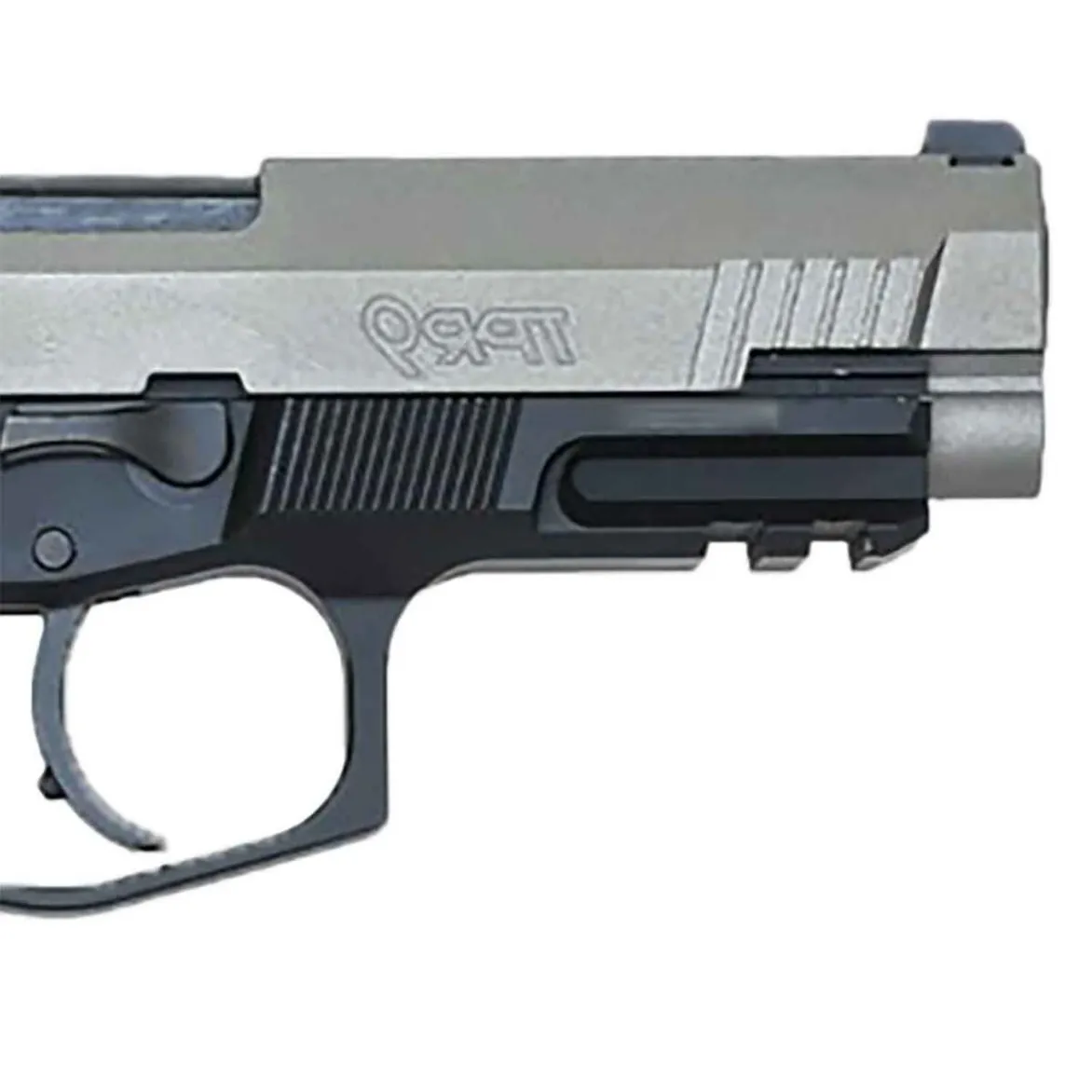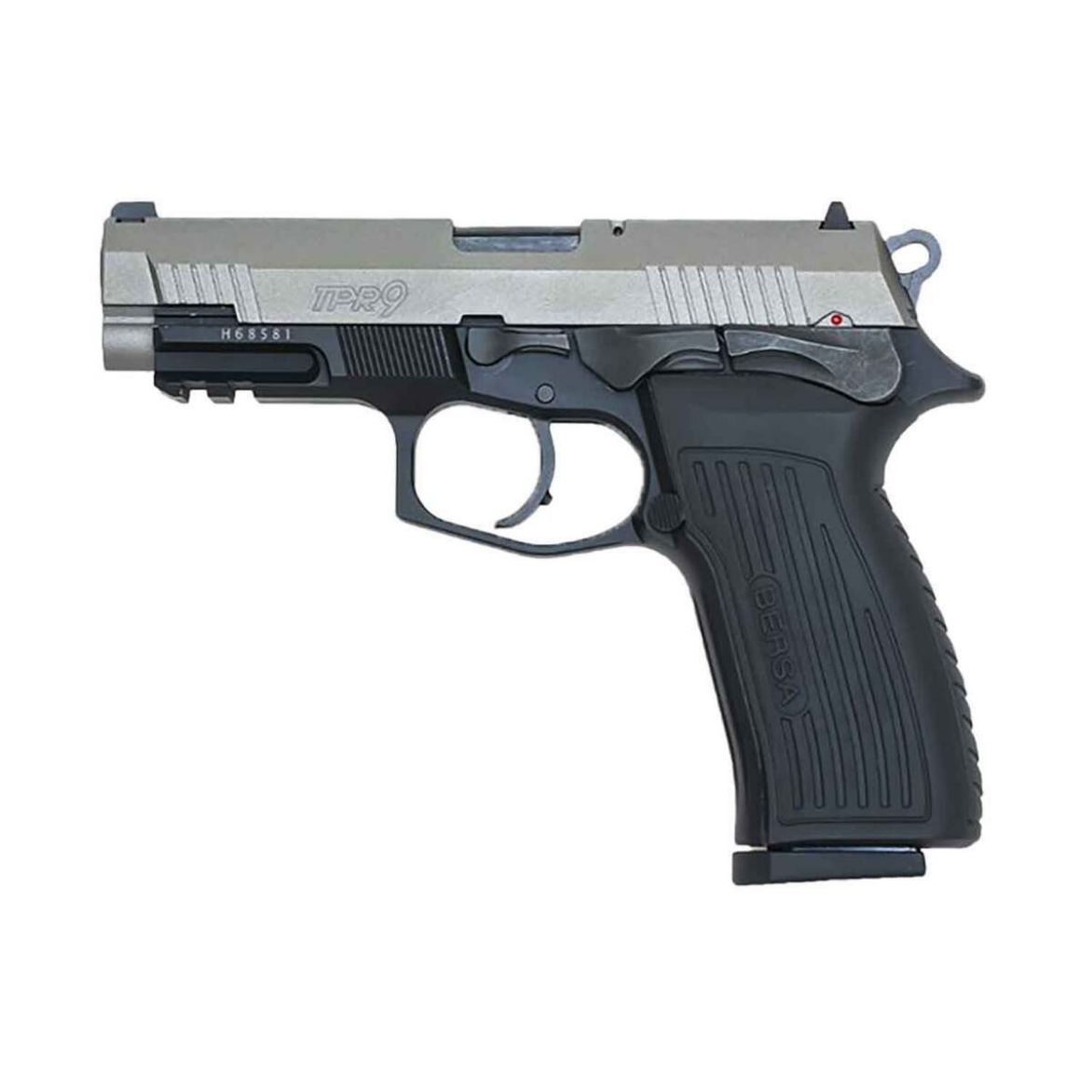 The Bersa TPR9 is a double/single-action semi-auto pistol chambered in 9mm, designed for reliability and performance. Featuring a durable alloy frame with textured black polymer grips, the TPR9 delivers a comfortable and secure handling experience. Its 4.25-inch barrel ensures precision, while the interchangeable Sig Sauer type sights provide excellent target acquisition. With a capacity of 17+1 rounds, a duo-tone finish, and enhancements such as a Picatinny rail, loaded chamber indicator, and extended slide release, this firearm is ideal for personal defense and tactical use.