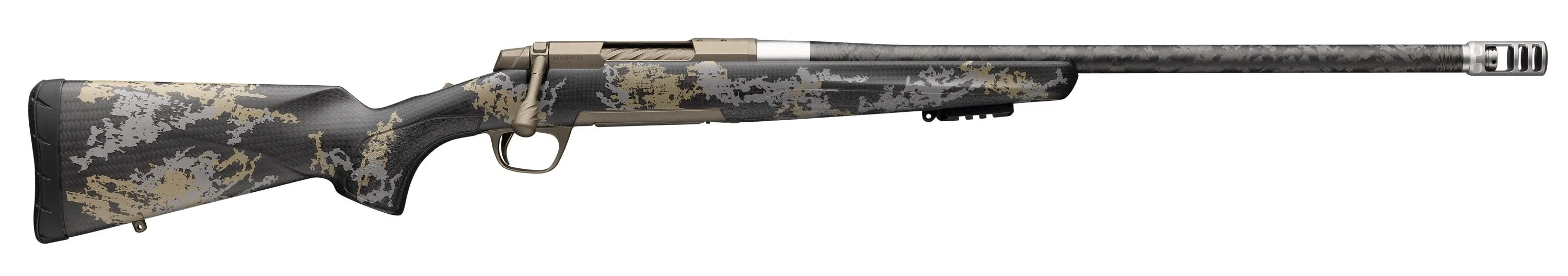 The Browning X-Bolt 2 Mountain Pro CF is a premium bolt-action rifle chambered in 6.5 Creedmoor, designed for hunters and precision shooters seeking lightweight performance and precision. This rifle features a 22-inch carbon fiber barrel with a Smoked Bronze Cerakote finish for exceptional durability and heat resistance. It is equipped with an adjustable DLX trigger, Preferred Barrels carbon fiber barrel, and a Recoil Hawg muzzle brake for superior shooting control. The carbon fiber stock incorporates accent graphics for a sleek appearance while maintaining durability and portability. Ideal for long-range shooting, it includes a threaded barrel with a 5/8×24 pattern, making it suppressor-ready. The X-Bolt 2 Mountain Pro CF is an ultimate choice for field hunters and competitive marksmen looking for cutting-edge technologies and reliable performance.
