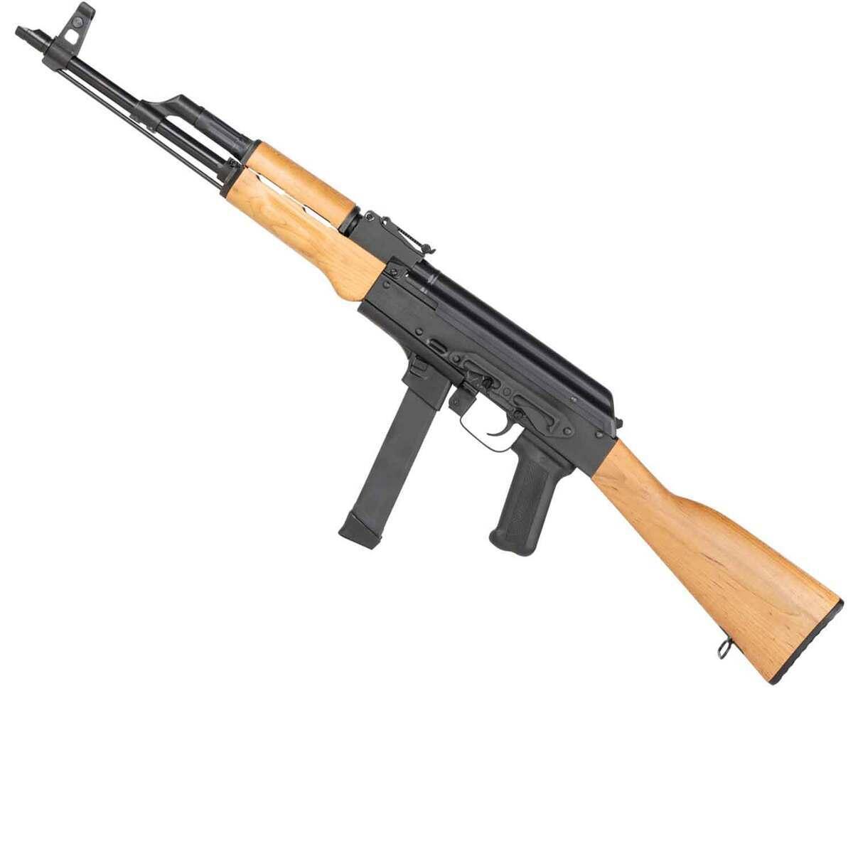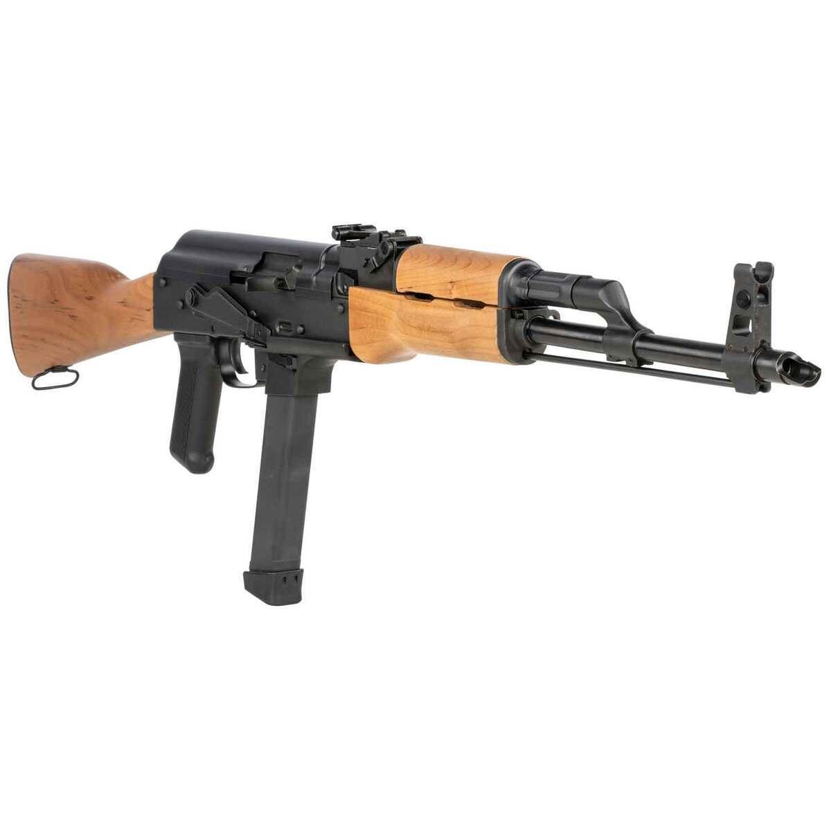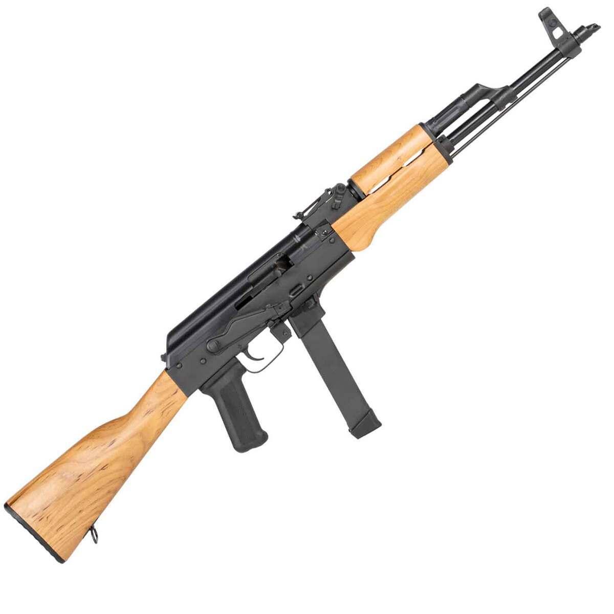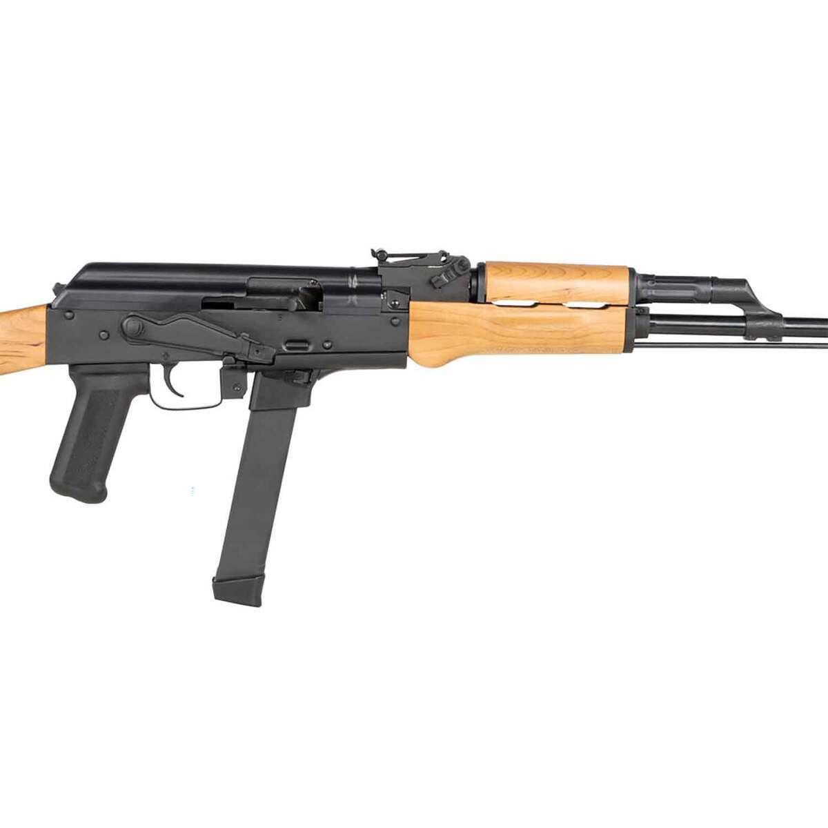 The Century Arms WASR-M is a semi-automatic rifle chambered in 9mm, merging classic AK-series design with modern tactical functionality. This rifle features a durable stamped receiver and a military-style wood stock, delivering robust construction and a traditional aesthetic. Equipped with open rifle sights and a side mount scope rail, the WASR-M is ready for precision shooting, while its RAK-1 enhanced trigger group ensures smooth operation. It includes a 33-round Glock-style magazine, making it versatile for defense or range use. Finished in matte black, the WASR-M offers reliability and performance for discerning rifle enthusiasts.