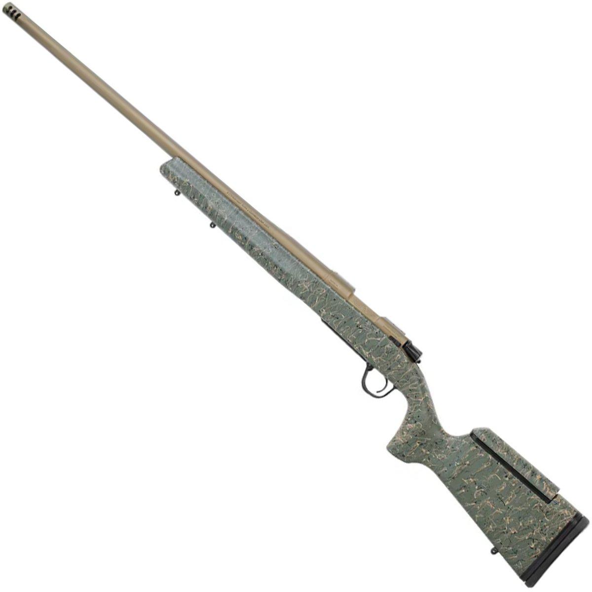 The Christensen Arms Mesa Long Range is a precision-engineered bolt-action rifle designed for long-range shooting enthusiasts and hunters. Chambered in 308 Win, it features a 24-inch barrel with a durable Bronze Cerakote finish, a carbon fiber composite stock with adjustable features in a sleek green with black and tan accents, and a threaded barrel (5/8×24) for added versatility. This rifle guarantees sub-MOA performance and is equipped with a match-grade trigger, making it a top-tier choice for accuracy and reliability in any conditions.