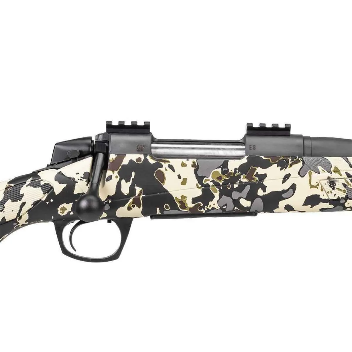 The CVA Cascade 30-06 Springfield Bolt Action Rifle is designed to deliver unparalleled performance and precision. Featuring a robust 4140 carbon steel barrel finished in an elegant sniper gray, this rifle is built for durability and accuracy in any condition. Its threaded muzzle allows for convenient attachment of a suppressor or brake, while the bolt design with a 70-degree throw ensures smooth and rapid cycling with ample scope clearance. Equipped with a two-position safety for intuitive operation, and a four-round, detachable flush-fit magazine for seamless loading, the Cascade stands out as an optimized choice for hunting and sport shooting. With a Big Sky Camo SoftTouch synthetic stock and a 24in barrel length, this rifle is both comfortable and highly effective in a variety of shooting environments.
