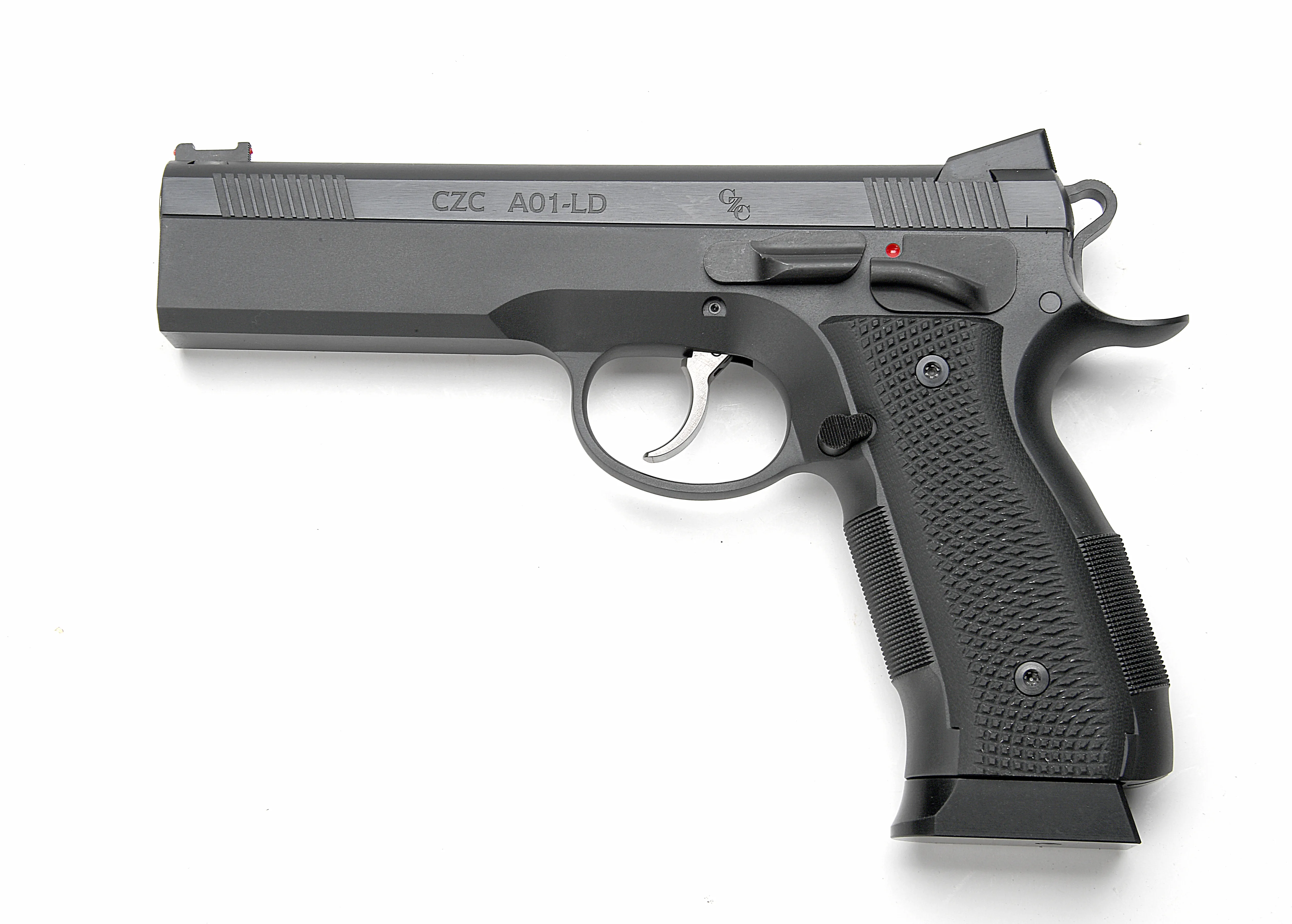 The CZ-USA A01-LD Custom 9mm semi-auto pistol sets a high standard in performance and accuracy. Designed with a steel frame and Black G10 grips, this pistol offers superior durability and ergonomics. Featuring a 4.9-inch barrel with Fiber Optic front sights and fixed rear sights, target acquisition is quick and reliable. The upgraded trigger, undercut trigger guard, and high-cut beavertail ensure exceptional control and comfort. With a 19+1 capacity, Black Polycoat & Nitride finish, and weighing 46.5 oz., this firearm is optimized for competitive shooting and personal defense. Experience unmatched craftsmanship in the A01-LD, a proud member of the 75 Series family.