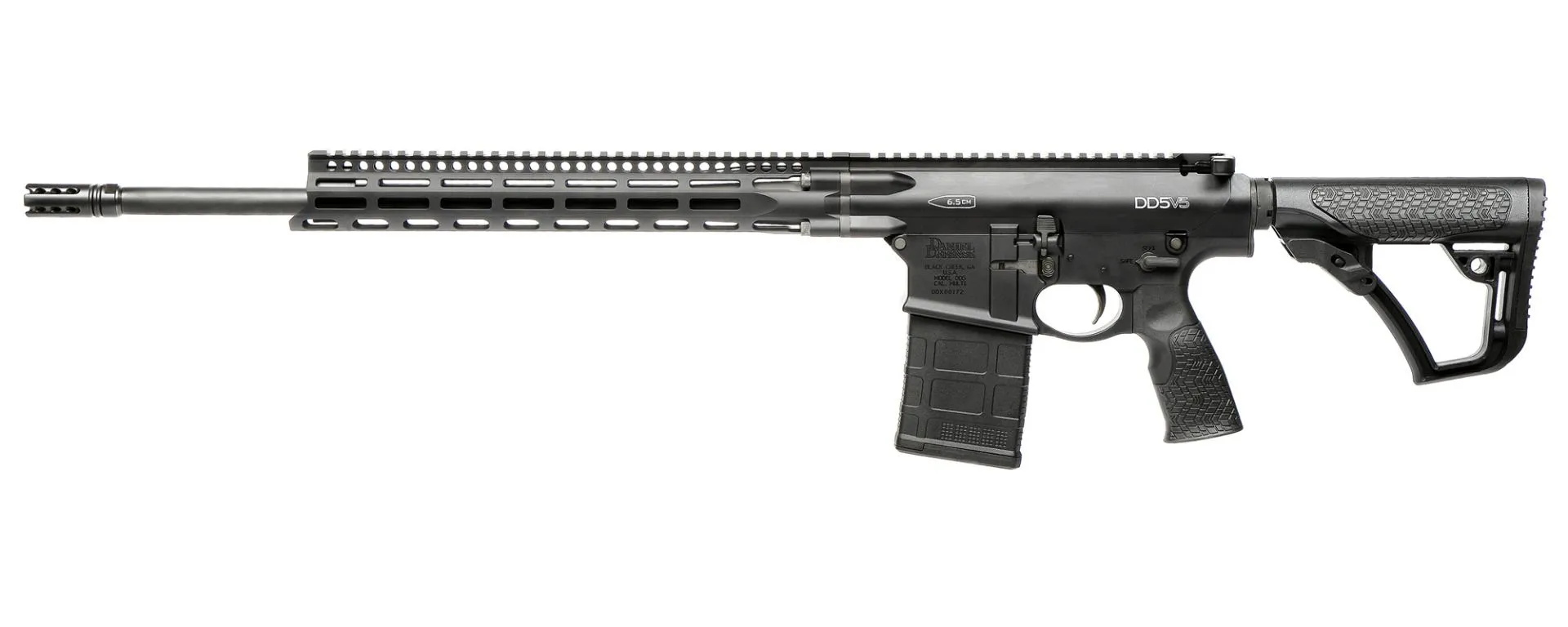 The Daniel Defense DD5 V5 6.5 Creedmoor is a premier semi-automatic rifle designed for precision and reliability. Featuring a 20-inch barrel with a 1-in-8 twist rate, it is optimized for long-range performance. The machined 7075-T6 aluminum receiver and black Type III hard anodized finish ensure durability and corrosion resistance. With a collapsible/folding Daniel Defense stock and DD5 15″ aluminum M-Lok rail, this rifle offers exceptional modularity and control. Additional features include an adjustable rifle +1 gas system for superior cycling and a pull-loop rear takedown pin for ease of maintenance. California compliant, this rifle comes with a 10-round PMAG, making it ideal for hunting, target shooting, or tactical applications.