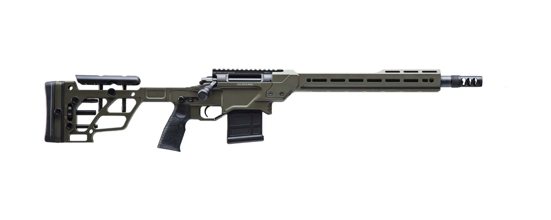The Daniel Defense DELTA 5 PRO is a high-performance bolt-action rifle chambered in .308 Winchester, designed for precision shooters and tactical enthusiasts. Featuring a 16-inch heavy Palma barrel, Timney Elite Hunter Trigger, and 20 MOA Picatinny base, this rifle delivers outstanding accuracy and reliability. Finished in Olive Drab with a chassis aluminum design, the DELTA 5 PRO is equipped with a threaded barrel (5/8×24) for attaching muzzle devices and suppressors. Ideal for competitive shooting or hunting, this rifle offers a 10+1 capacity and comes with a durable full-latch impact plastic case. Built in the USA, it stands out with its advanced ergonomics and premium features tailored for long-range precision performance.