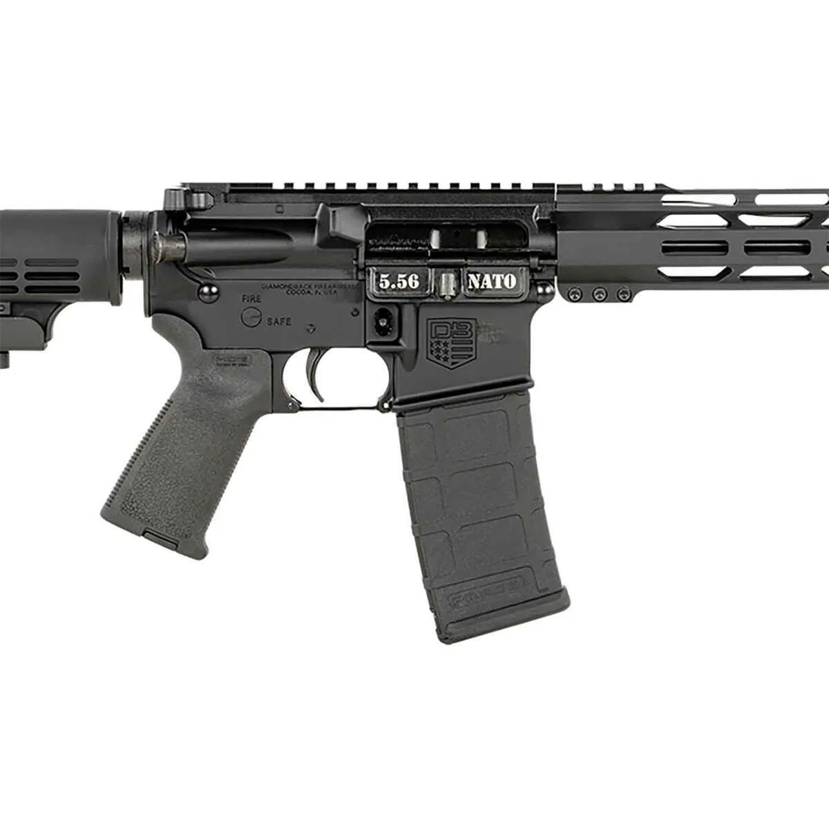 The Diamondback DB15 is a reliable and proven semi-automatic modern sporting rifle chambered in 5.56mm NATO. Featuring a 16-inch barrel with a black anodized finish, it offers durability through its 7075 T6 aluminum construction. Equipped with a 12-inch M-Lok rail, Magpul grip, and 6-position adjustable synthetic stock, the rifle is optic-ready and designed for adaptability and precision. Weighing 6.3 lbs with an overall length of 32.75 inches, it is ideal for tactical and sporting applications, ensuring accuracy with its 1:8 twist rate. The DB15 is a versatile choice for shooters looking for dependability and performance.
