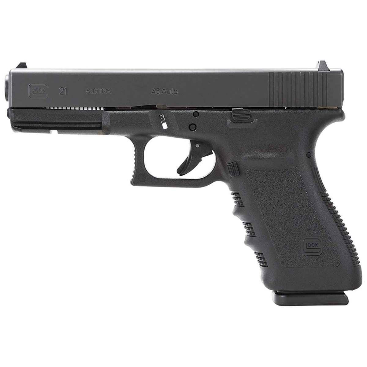 The Glock 21SF .45 Auto (ACP) 4.61-inch Black Nitride Pistol is a trusted choice for law enforcement and personal defense. Countless units praise this powerful, lightweight pistol for its reliability and performance in all climates, from the North to South Poles. Designed with a reduced receiver circumference (SF model), the Glock 21SF offers improved comfort and control, making it suitable for shooters with smaller hands. Key features include white dot and outline sights for fast target acquisition, a durable polymer frame, Glock’s Safe Action System with three independent safeties, cold hammer-forged barrels, and a nitride-treated finish for extended longevity. With a full-size frame and a 13+1 round capacity, this versatile sidearm is a dependable companion for any setting.