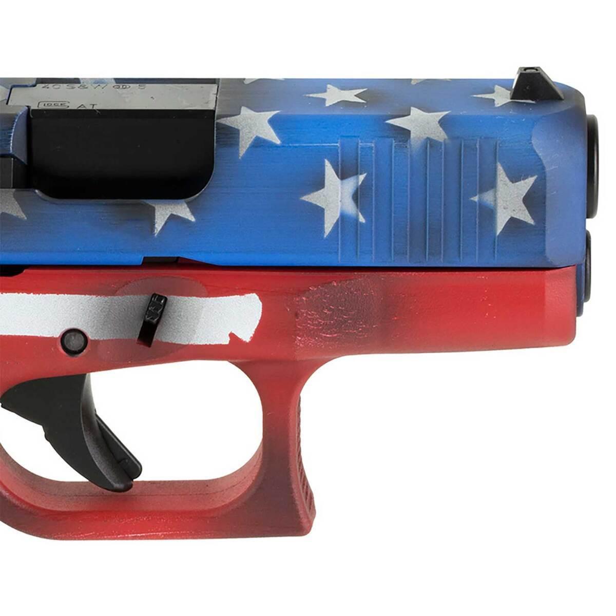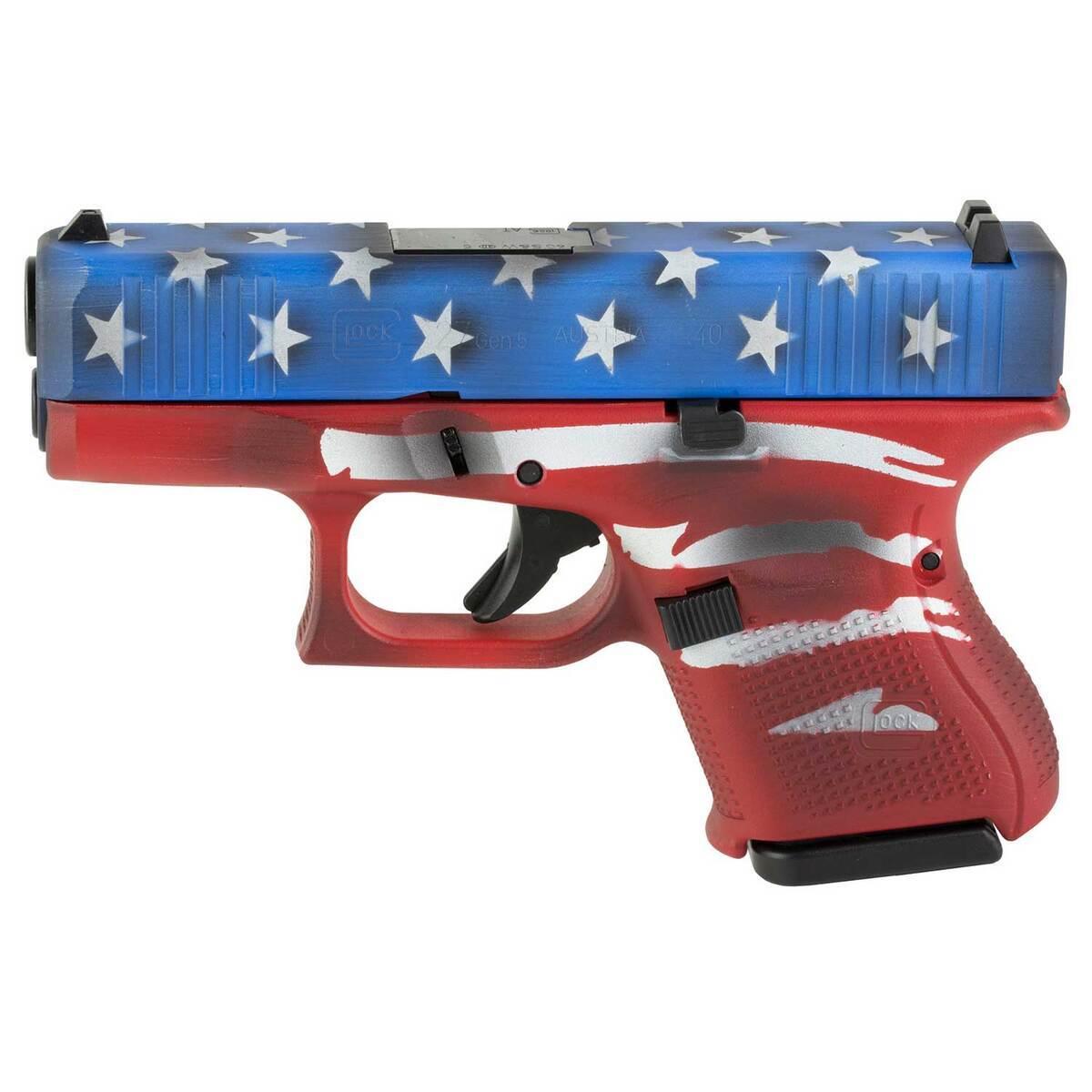 The Glock 27 Gen5 chambered in 40 S&W provides a compact, versatile solution for users seeking a high-performance handgun. This subcompact pistol, with its innovative Gen5 features, combines practicality and precision. Offering a flared mag-well, ambidextrous slide stop lever, and the Glock Marksman barrel (GMB) for enhanced accuracy, the model is ideal for law enforcement backup or everyday concealed carry. The modular backstrap and beavertail system ensure user adaptability, while the nDLC finish and striking Red, White & Blue Battleworn Flag design make it not just a reliable pistol, but one with visual appeal.