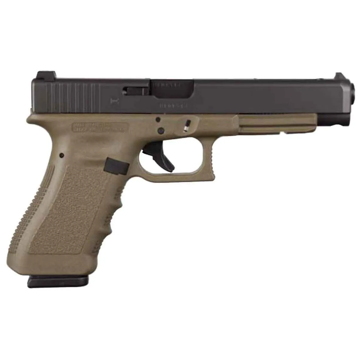 The Glock 34 9mm Luger pistol is purpose-built for unparalleled accuracy and precision. Featuring a 5.31-inch extended barrel, longer slide dimensions, and an elongated sight radius, this full-size, highly accurate handgun excels in competitive shooting sports such as IPSC while also proving itself as a reliable tool for SWAT teams and tactical operations. Its durable polymer frame with OD Green and black finish, combined with Glock’s renowned Safe Action System, ensures robust performance under any conditions. Whether you’re a competitor, tactical professional, or an enthusiast seeking superior craftsmanship, the Glock 34 delivers outstanding performance.