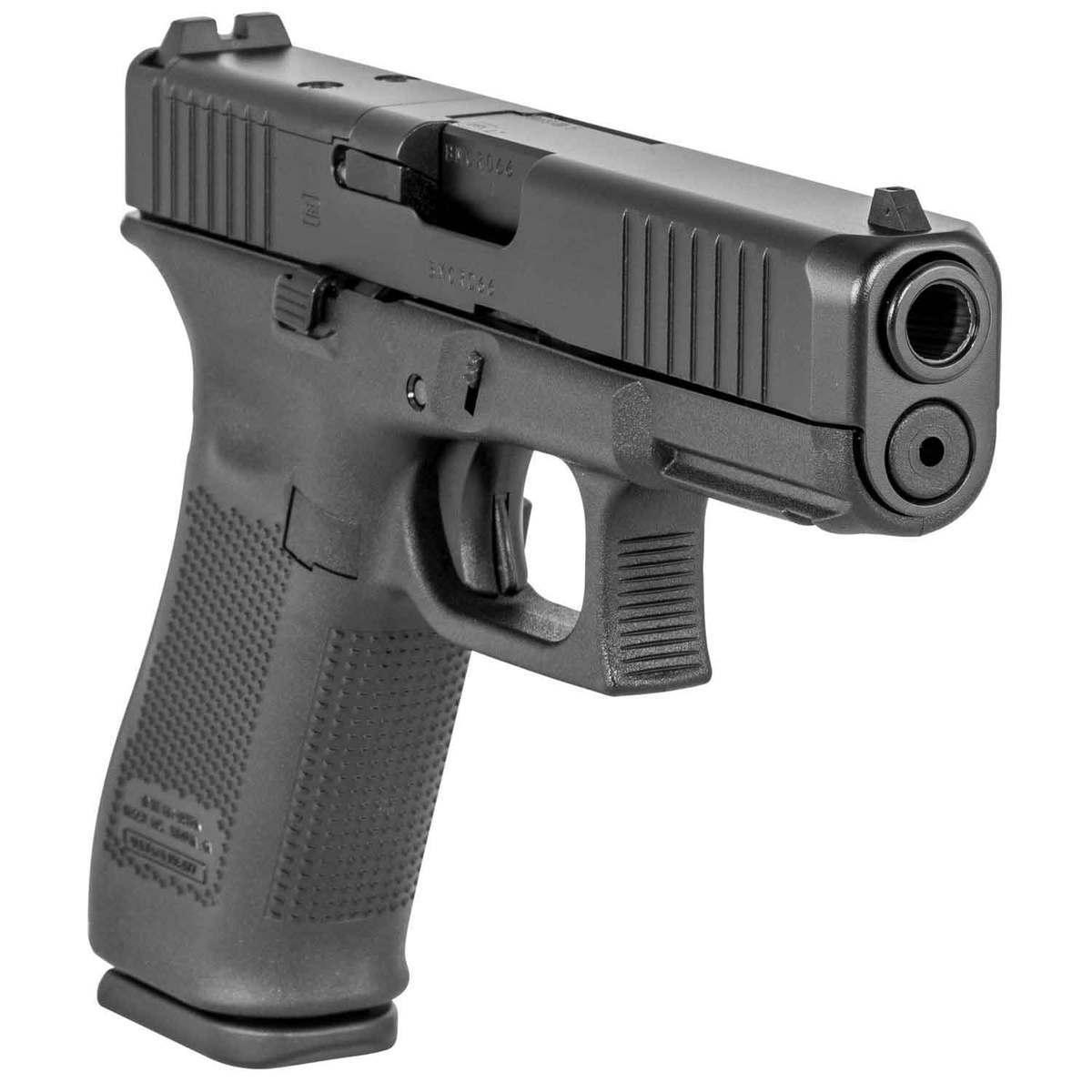 The Glock 45 Gen5 MOS pistol in 9mm Luger combines a compact slide with a full-size frame, offering the perfect balance of performance and handling. Featuring the Modular Optic System (MOS) Configuration, this firearm allows easy installation of a miniature reflex sight, providing enhanced aiming capabilities without needing additional hardware. Engineered with military and law enforcement specifications, the superior Glock nDLC finish delivers durability and a non-reflective black surface. Front serrations enable confident slide manipulation even under challenging conditions, while the flared magazine well ensures quick reloads during critical situations. Additional features include a smoother trigger pull, enhanced grip texture, reversible magazine catch, ambidextrous slide stop lever, and the adjustable Modular Backstrap System (MBS). The Glock Marksman Barrel (GMB) ensures superior accuracy and reliability. Compact yet highly versatile, this pistol is a trusted tool for professionals and enthusiasts alike. Includes 3 magazines.