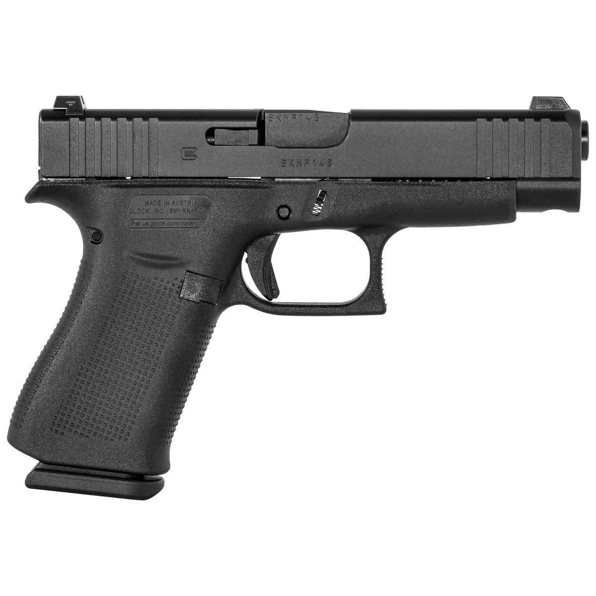 The Glock 48 w/GNS 9mm Luger pistol features a compact-size grip length, a built-in beaver tail, and a slim profile for a comfortable, balanced grip ideal for a range of users. Integrated with Gen5 and Slimline frame elements, it includes a short trigger distance, a reversible magazine catch, precision-milled front serrations, and the highly accurate GLOCK Marksman Barrel (GMB). Outfitted with Glock Night Sights, the firearm ensures enhanced visibility in various lighting conditions. This 10+1 round handgun offers dependable Safe Action functionality with three automatic safeties and comes in a durable black plastic case.