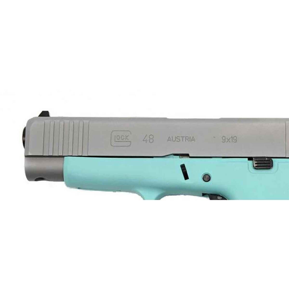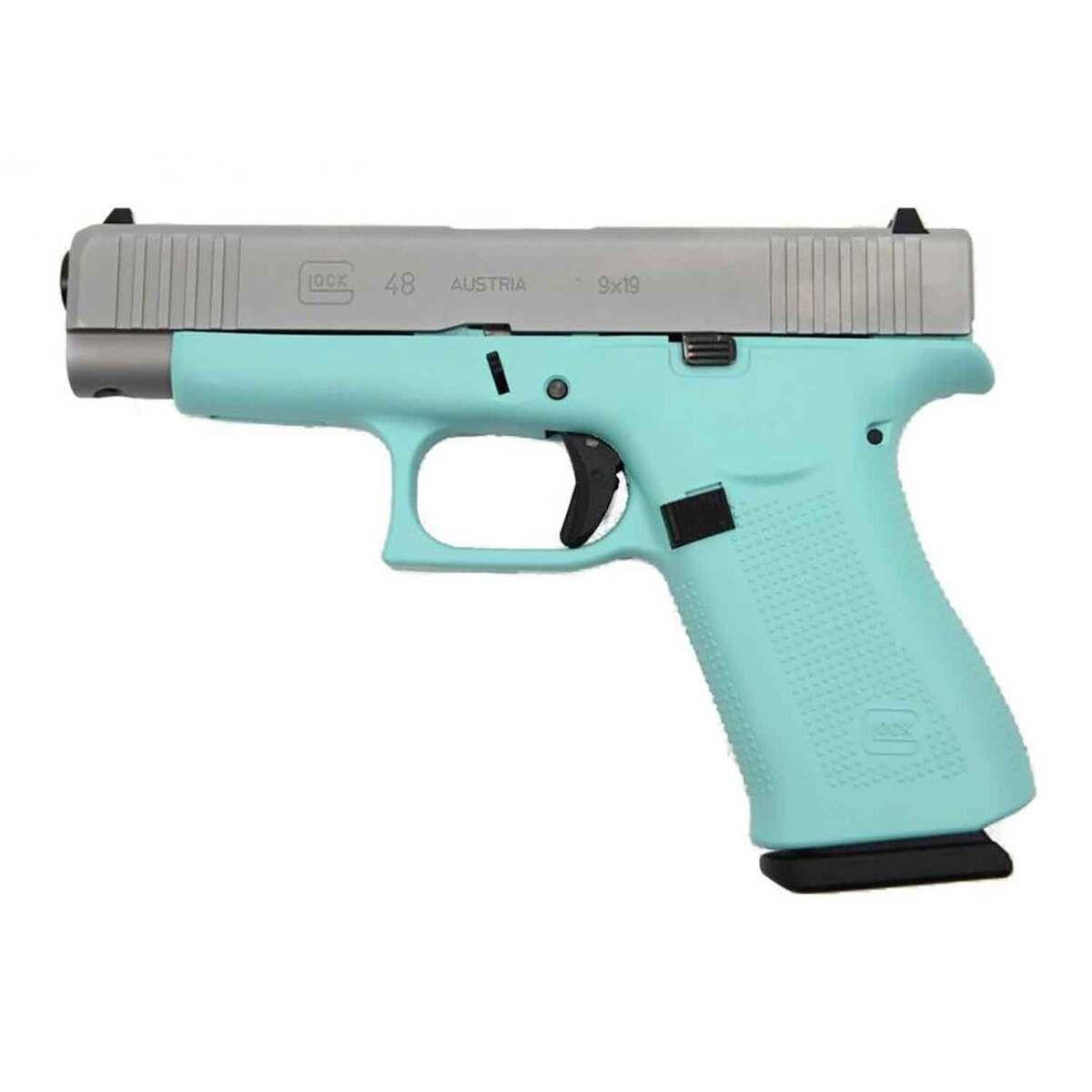 The Glock 48 9mm Luger Pistol features a 4.2-inch barrel and a striking Gray/Robin’s Egg Blue finish. Designed for optimal comfort and versatility, this compact handgun boasts a slim-profile grip length, a built-in beavertail, and a reversible magazine catch for ease of use. Equipped with Glock’s match-grade Marksman Barrel (GMB) for exceptional accuracy and precision-milled front serrations, the G48 combines elements of the Gen5 and Slimline series, making it ideal for various users and scenarios. Compact yet powerful, the Glock 48 is perfect for concealed carry, home defense, and general shooting enthusiasts.