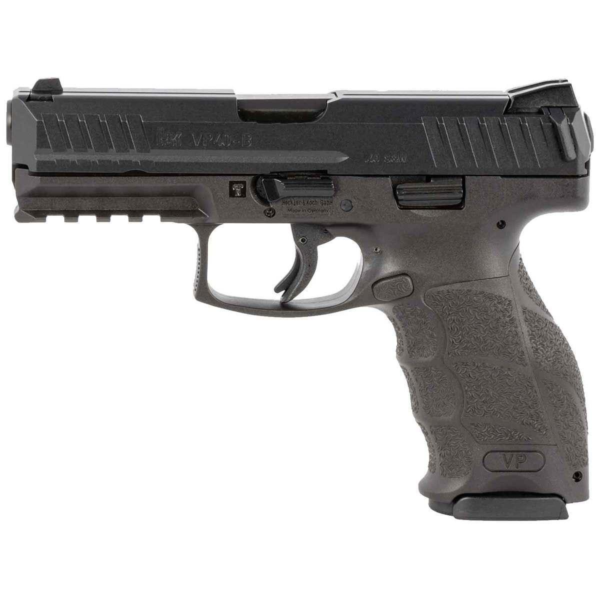 The HK VP40 is a high-performance semi-auto pistol chambered in 40 S&W, designed for precision and reliability. It features a striker-fired system with a light pull trigger and ergonomic grip design. The grip includes three interchangeable backstraps and two additional sets of grip plates for customizable comfort. The VP40 boasts ambidextrous slide and magazine releases, an extended Picatinny MIL-STD-1913 rail for accessories, and a disassembly lever for easy maintenance. Equipped with 3-dot radioactive luminous sights, this pistol ensures accuracy in various lighting conditions. Includes two 13-round magazines, making it an ideal choice for personal defense and range shooting.