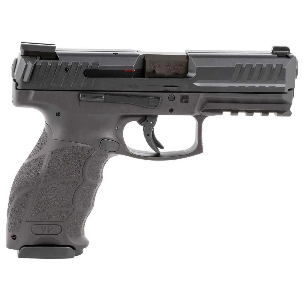 The HK VP40 is a cutting-edge striker-fired pistol chambered in 40 S&W, designed for reliability and performance. Featuring a light pull trigger, ergonomic grip design with three interchangeable backstraps, ambidextrous slide release, and a push button mag release, this handgun ensures user comfort and ease of use. Additional highlights include an extended Picatinny MIL-STD-1913 rail for accessories, a durable black serrated steel finish, and a disassembly lever for simple maintenance. Includes two 13-round magazines, making it a versatile and capable choice for personal defense or range use.