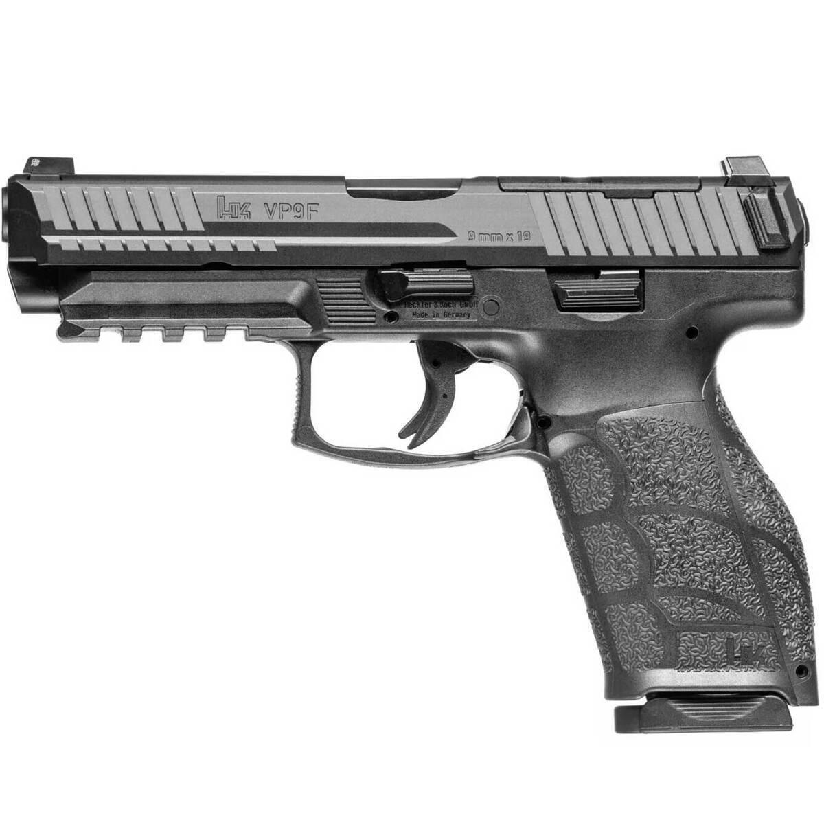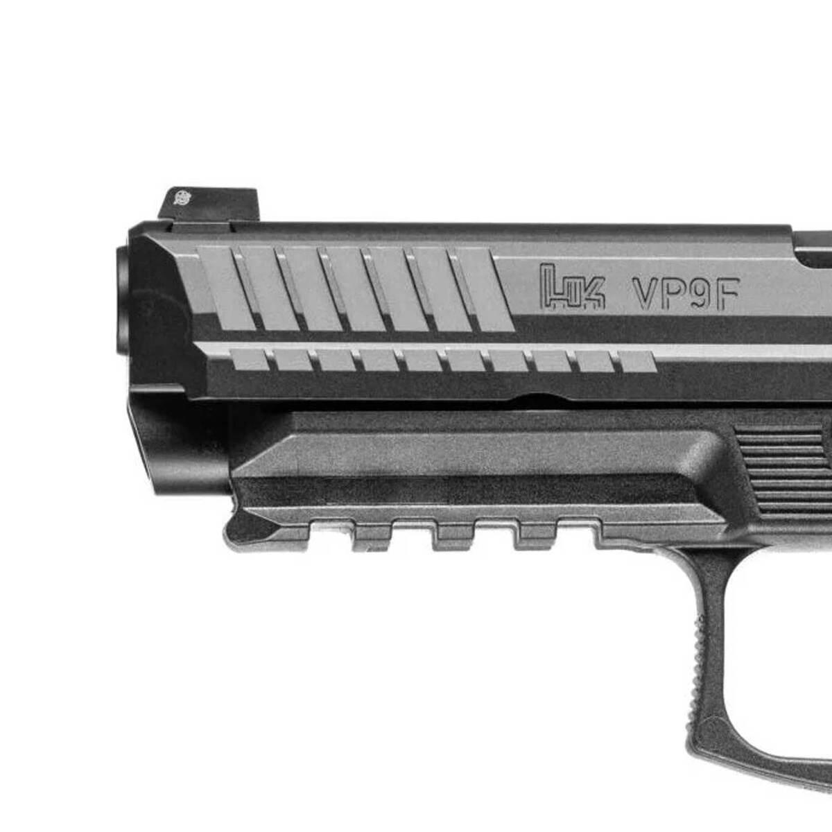The H&K VP9F 9mm Luger pistol is a cutting-edge firearm crafted for performance and reliability. Featuring a 4.53-inch barrel, full-size frame, black finish, and a high-visibility tritium front sight paired with a serrated rear sight, the VP9F is designed to deliver sharp accuracy and effortless target tracking. Its advanced trigger system and interchangeable grip panels enhance user connection, ensuring optimal comfort and control for every shooter. With a durable optic-ready slide and ambidextrous controls, this handgun caters to professionals and enthusiasts alike in their pursuit of uncompromising performance. The VP9F’s reputation is solidified by law enforcement agencies reporting significant improvements in qualifying scores after adopting this top-tier centerfire pistol.