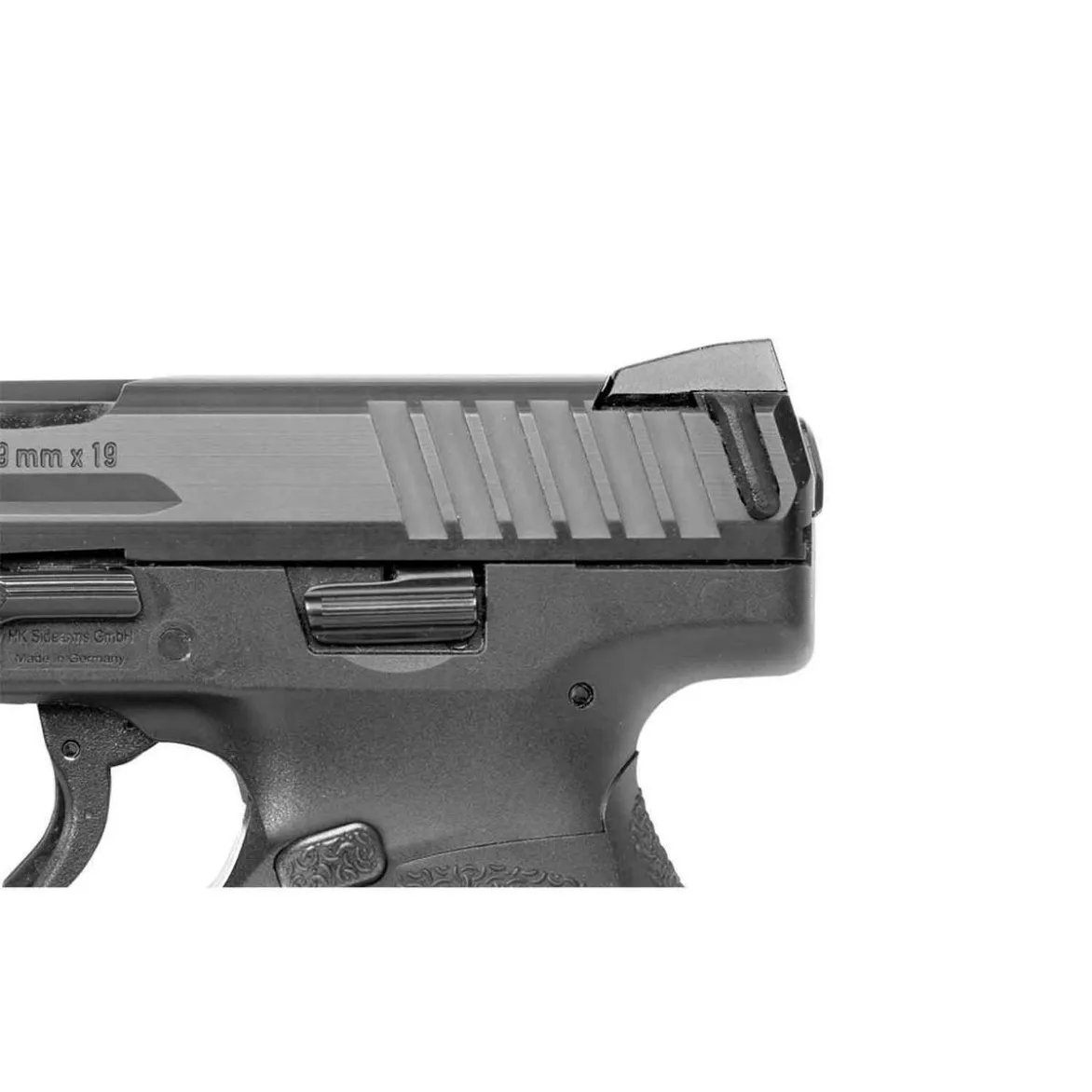 The HK VP9-B 9mm Luger 4.09in Black Pistol with a 10+1 round capacity is a highly versatile firearm developed for civilian sport shooting, security, military, and law enforcement use. Featuring Heckler & Koch’s first striker-fired design since the P7 series, it includes an enhanced light pull trigger for superior performance. The cold hammer-forged barrel, crafted from cannon-grade steel, ensures durability and increased muzzle velocity. Ergonomic grip design with changeable backstraps and side panels accommodates all hand sizes. Additional features such as the polymer frame with integrated Picatinny rail, ambidextrous controls, patented rear-mounted charging supports, and a hostile environment finish on the machined steel slide make it a reliable and adaptable choice for any user.