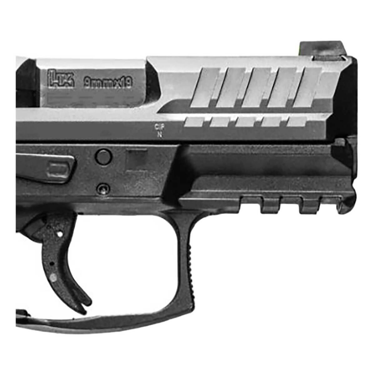 The Heckler and Koch VP9SK OR is a compact, striker-fired 9mm semi-auto pistol, tailored for personal defense and concealed carry enthusiasts. Featuring a 3.4-inch barrel and a polymer frame, it offers a capacity of 10+1 rounds and comes optics-ready for advanced customization. Designed for optimal control, it incorporates ambidextrous slide and magazine releases, tritium night sights for low-light performance, and two additional sets of grip plates for personalized comfort. The sleek black finish and its lightweight design, weighing just 23.07 ounces, make it an ideal choice for reliable performance and easy carry.
