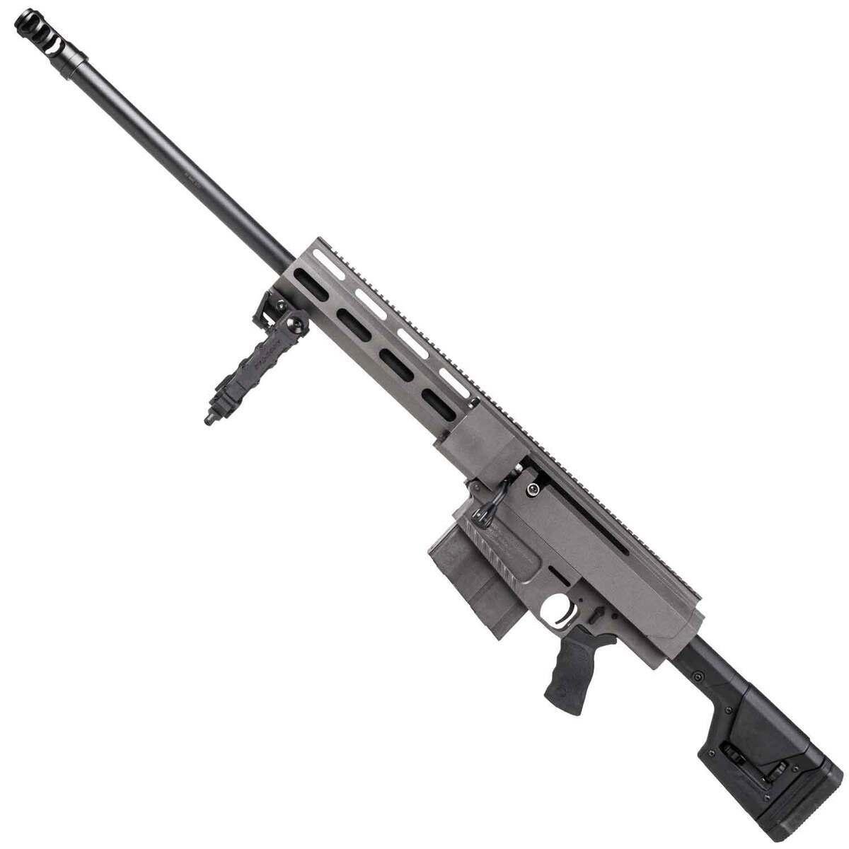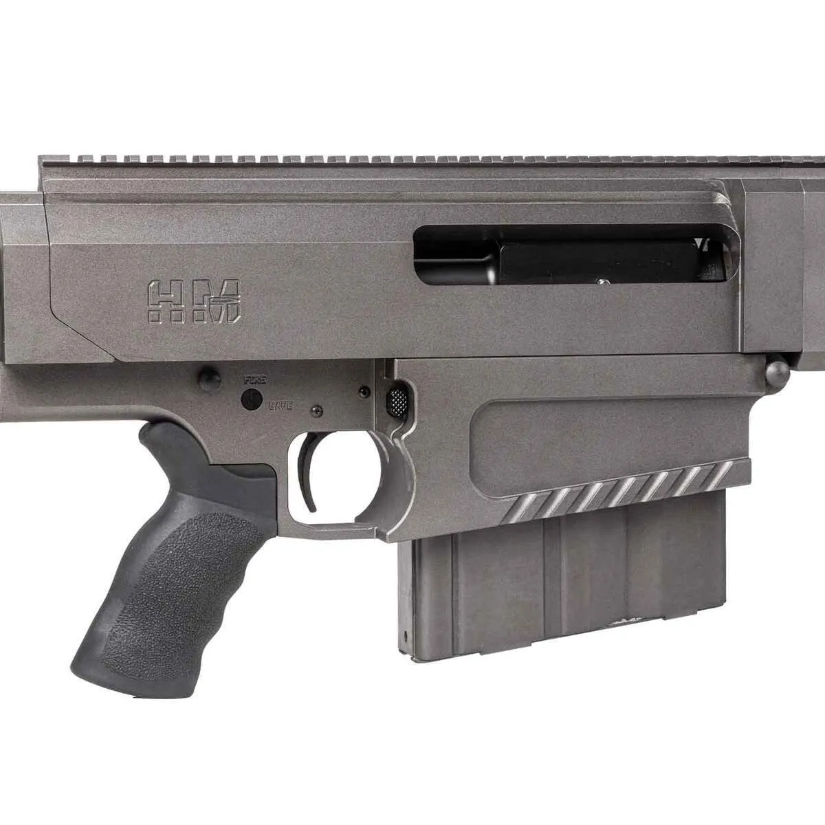 The HM Defense HM50B Bolt Action Rifle is precision-engineered for exceptional performance in the powerful .50 BMG caliber. Featuring a 29.25-inch match-grade barrel with an 8-groove setup and a 1:15-inch twist, it offers superior accuracy. The rifle includes a tungsten finish, CNC-machined 7075-T6 billet upper and lower receivers, and a 14-inch 1913 Picatinny free-floated billet rail crafted from aircraft-grade aluminum. With a left-hand bolt operation and right-hand ejection port, it is designed for ease of use. Additional features include a Magpul PRS Gen3 adjustable stock, ERGO Tactical Super Ambi Grip, Accu-Tac HD-50 bipod for stability, a target trigger, and a generous 10-round magazine capacity. Weighing 29.5 lbs, this rifle is built for durability, precision, and top-tier performance.