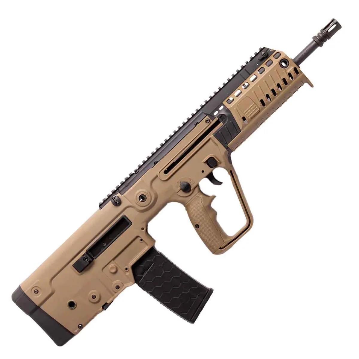 The IWI TAVOR XB95 redefines modern firearms with its advanced bullpup design and superior craftsmanship. Chambered in 300 AAC Blackout, this semi-automatic rifle features a 16.5-inch threaded barrel with a 1-in-8 twist, delivering exceptional accuracy and performance. The rifle is finished in Flat Dark Earth and includes a full-length Picatinny top rail, BUIS with Tritium front sights, and a gas piston system for reliable operation. With its synthetic stock, compact 26.125-inch overall length, and compatibility with standard AR magazines, the TAVOR XB95 is the ideal choice for tactical enthusiasts and modern shooters alike.