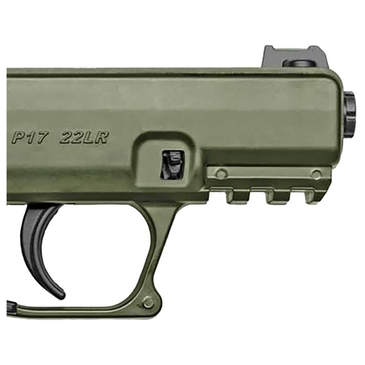 The Keltec P17 is a compact and lightweight semi-auto pistol chambered in 22 LR. Featuring a polymer frame with a green finish and a threaded barrel, this firearm is perfect for recreational shooting and training. It offers an impressive capacity of 16+1 rounds, fiber optic front sight, and fixed rear sight for enhanced accuracy. The P17 boasts a comfortable grip, simple operation, and reliable striker-fired action, making it an ideal choice for both new and experienced shooters seeking affordability and performance.