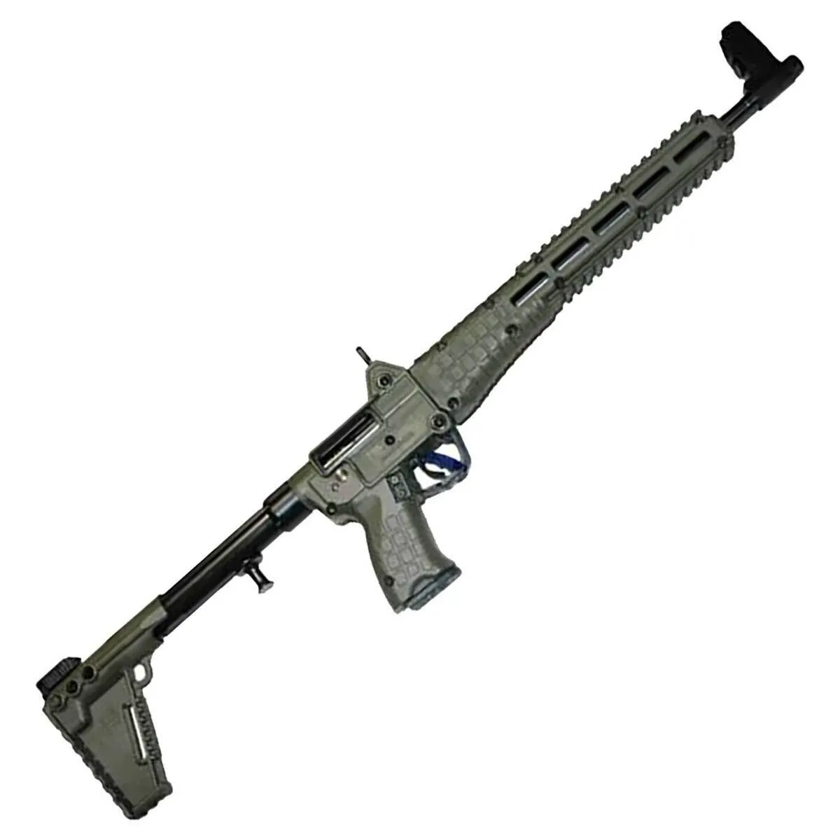 The Kel-Tec Sub 2000 in 40 S&W is a versatile semi-automatic sporting rifle, boasting a 16.25-inch barrel optimized for .40 caliber performance. With its lightweight OD Green design, foldable frame, and compatibility with M&P40 magazines, it offers excellent portability and adaptability for shooters of all sizes. Equipped with Picatinny and M-LOK rails, it provides ample customization for accessories, making it ideal for a range of applications.