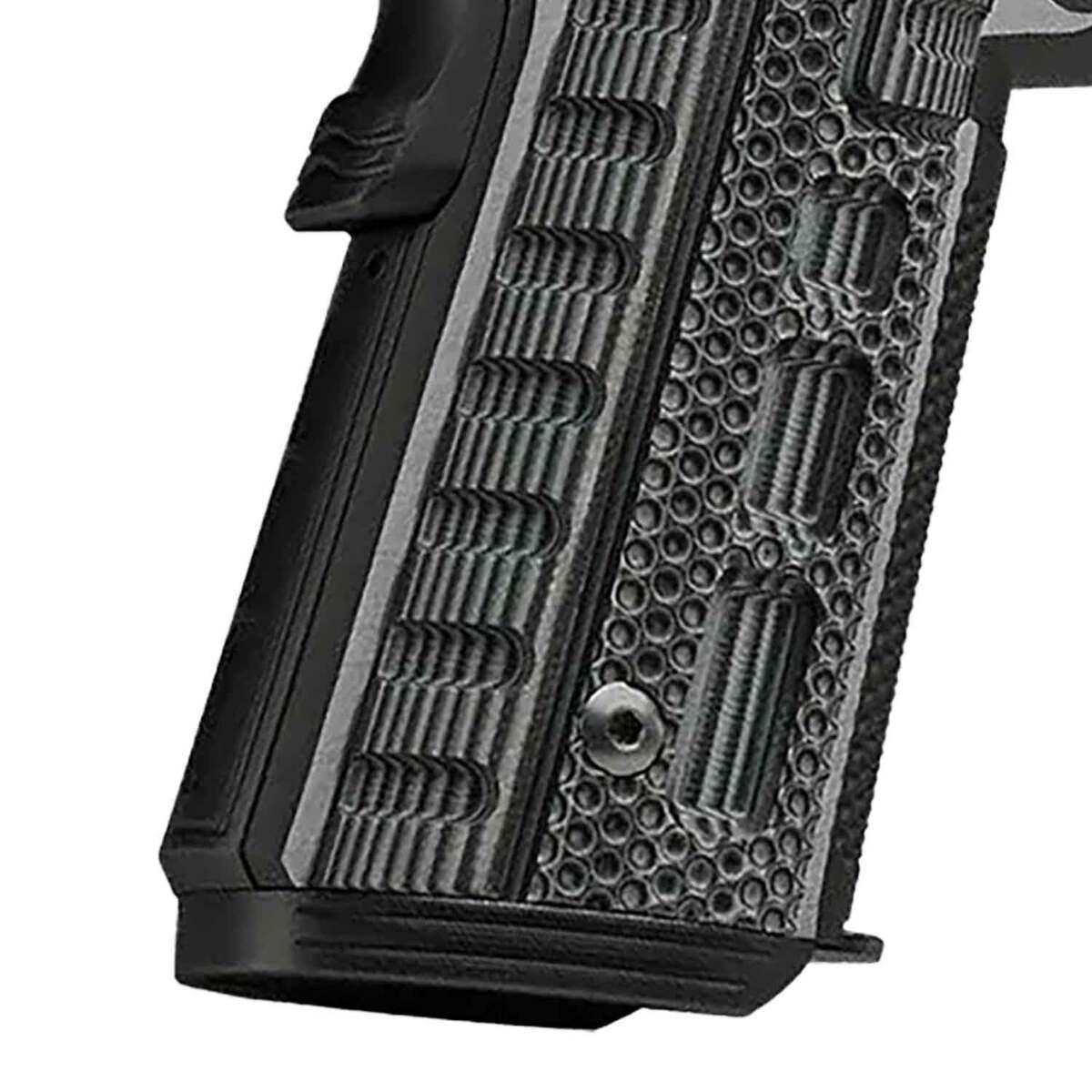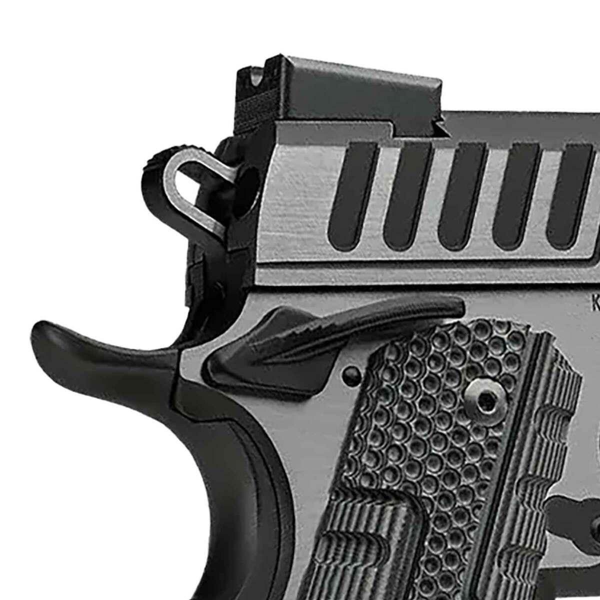 The Kimber Rapide Dusk 10mm Semi-Auto Pistol blends exceptional performance with sleek aesthetics, making it a standout choice for firearms enthusiasts. Featuring a 5-inch titanium copper nitride barrel, Tru-Glo TFX Pro Day Night sights, and a durable Gray KimPro II finish, this pistol is engineered for accuracy, reliability, and style. Its steel frame with Rapide G10 grips provides a secure and comfortable hold, while the 8+1 capacity makes it suitable for both shooting sports and personal defense. The V-Cut aluminum black trigger is designed for precision shooting, ensuring a crisp and responsive pull. The Rapide Dusk combines cutting-edge technology and premium materials, offering a top-tier experience for discerning shooters.