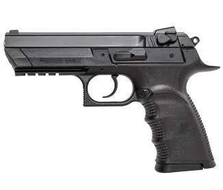 The Magnum Research Baby Eagle III Full Size is a highly regarded semi-automatic pistol chambered in 9mm. Featuring a matte black oxide finish and a durable polymer frame, this handgun blends durability with sleek aesthetics. Designed with user convenience in mind, it includes ambidextrous controls such as a slide decocker and magazine catch, along with a tactical rail for various accessories. With white 3-dot combat sights and a generous capacity of 10+1 rounds, it provides superior accuracy and reliability. Ideal for self-defense, range shooting, and tactical applications, the Baby Eagle III ensures a comfortable shooting experience with a polymer grip and a manageable weight of 28.6 ounces. This firearm is a great choice for anyone seeking a full-size pistol that combines quality, functionality, and ergonomic design.