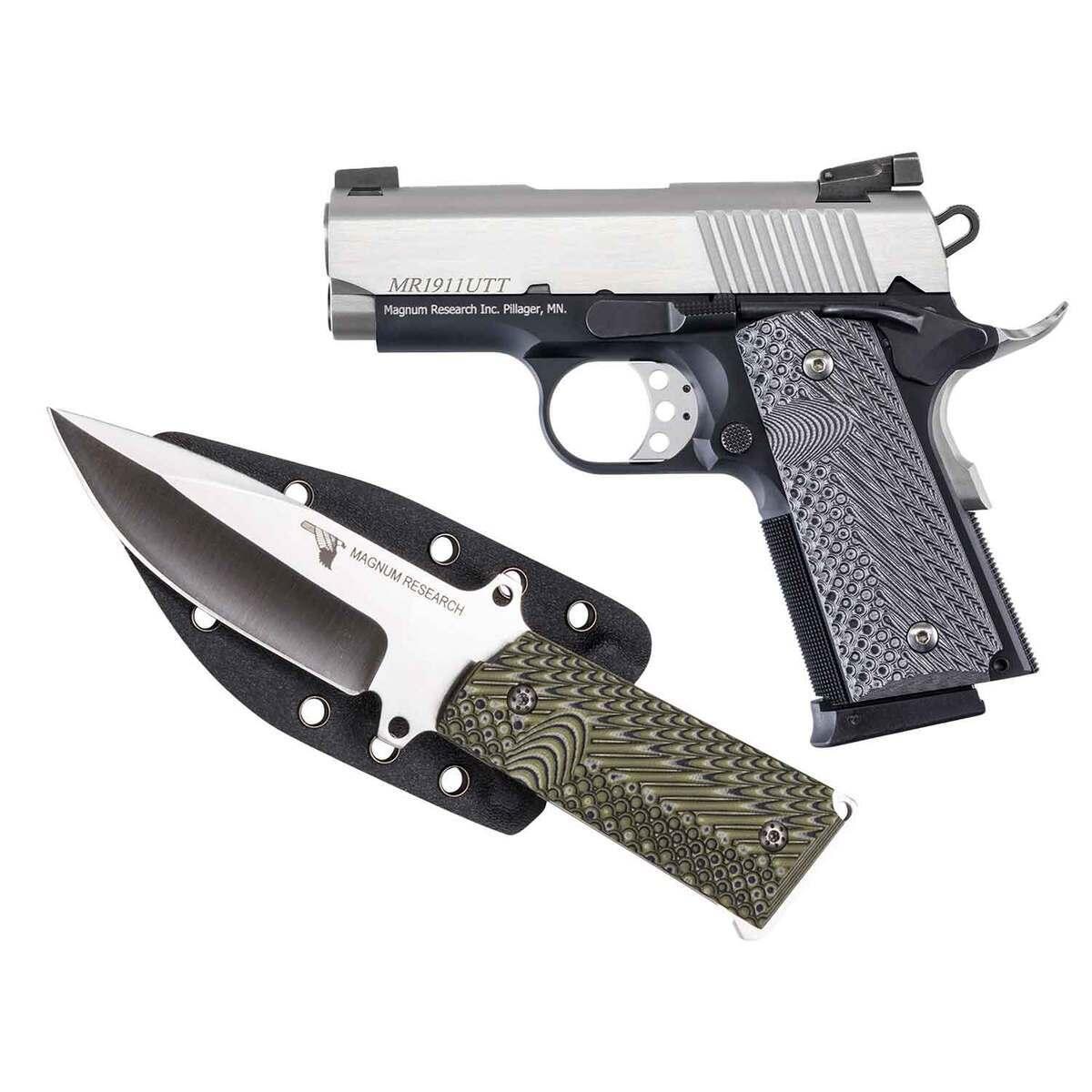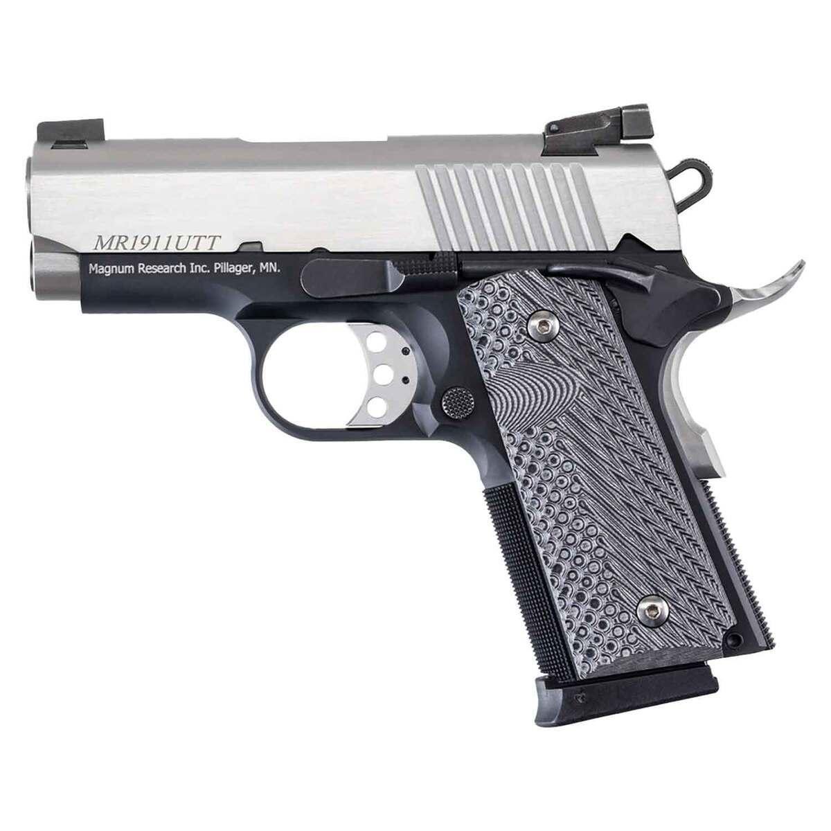 The Magnum Research Desert Eagle 1911 Undercover is a compact yet powerful semi-automatic pistol chambered in the reliable 45 ACP caliber. Designed for concealed carry enthusiasts, this firearm features a 3-inch matte black barrel and a lightweight two-tone aluminum alloy frame for enhanced portability and durability. With premium components like a skeletonized hammer, extended magazine release, and G10 black/grey grips, it ensures optimal performance, precision, and handling. Ideal for personal defense and professional use, its sleek design combines modern aesthetics with trusted 1911 ergonomics.