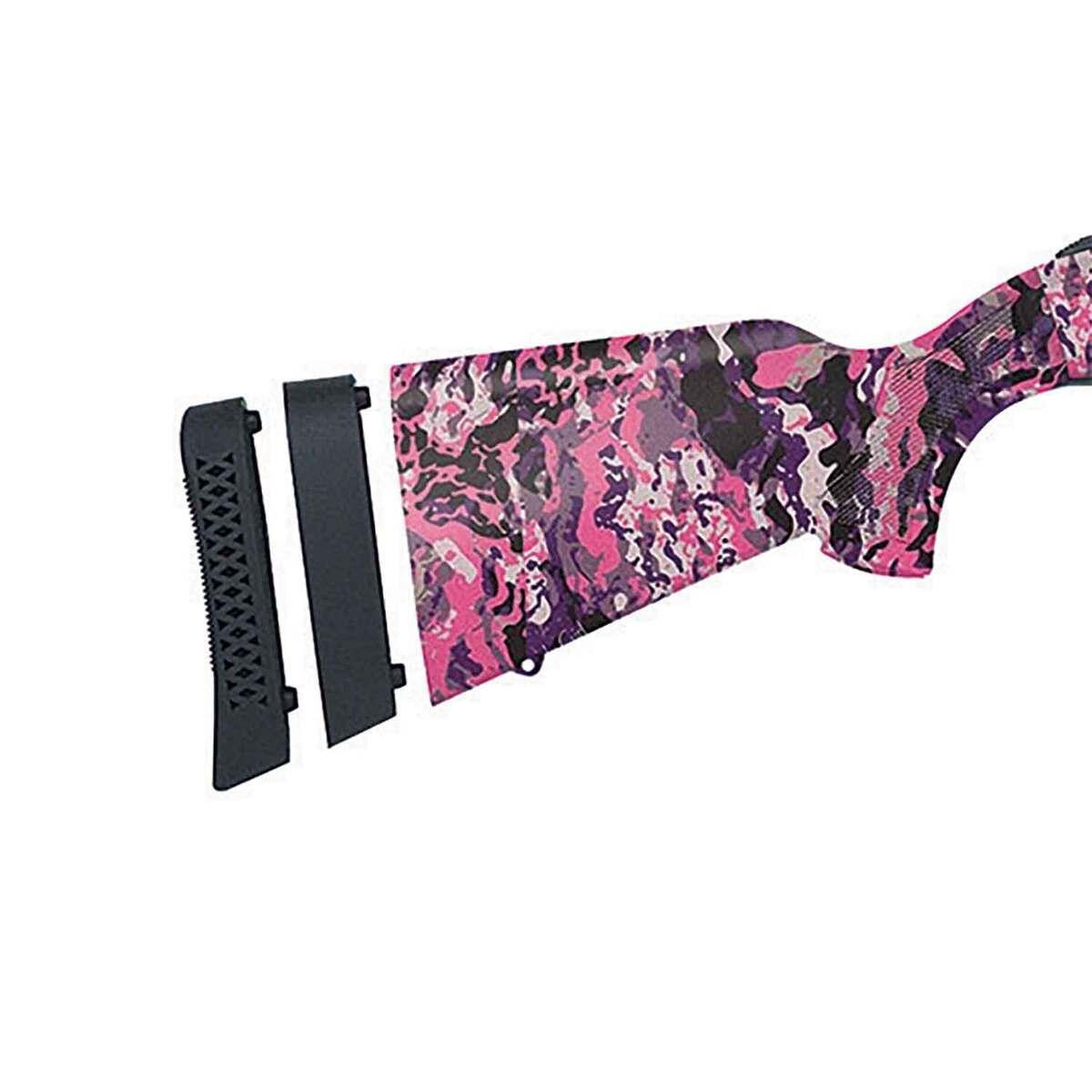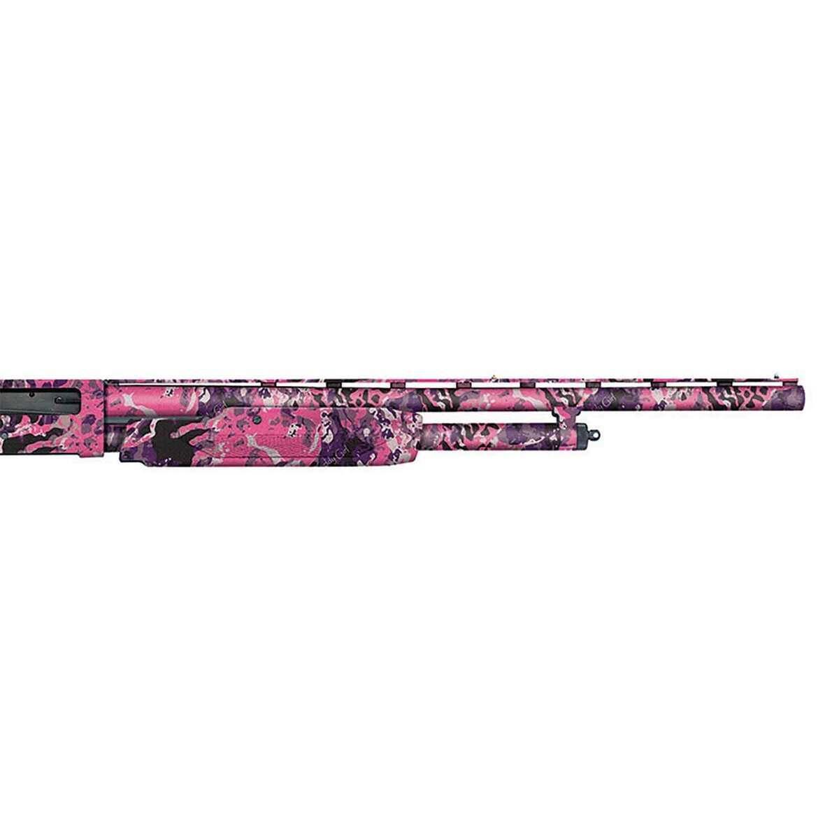 The Mossberg 500 Super Bantam 20 Gauge shotgun is an excellent choice for smaller-statured shooters, featuring a compact, lightweight design. With its Muddy Girl Wild camo finish, this shotgun combines performance and stylish aesthetics. It comes equipped with a 22-inch vent rib barrel, dual bead sights, and a 3-inch chamber for versatile hunting and shooting applications. The adjustable 12 to 13-inch length of pull and camo stock make it perfect for comfortable handling in the field. With a reliable pump action mechanism and a 5+1 capacity, this shotgun ensures dependable operation in a variety of scenarios.
