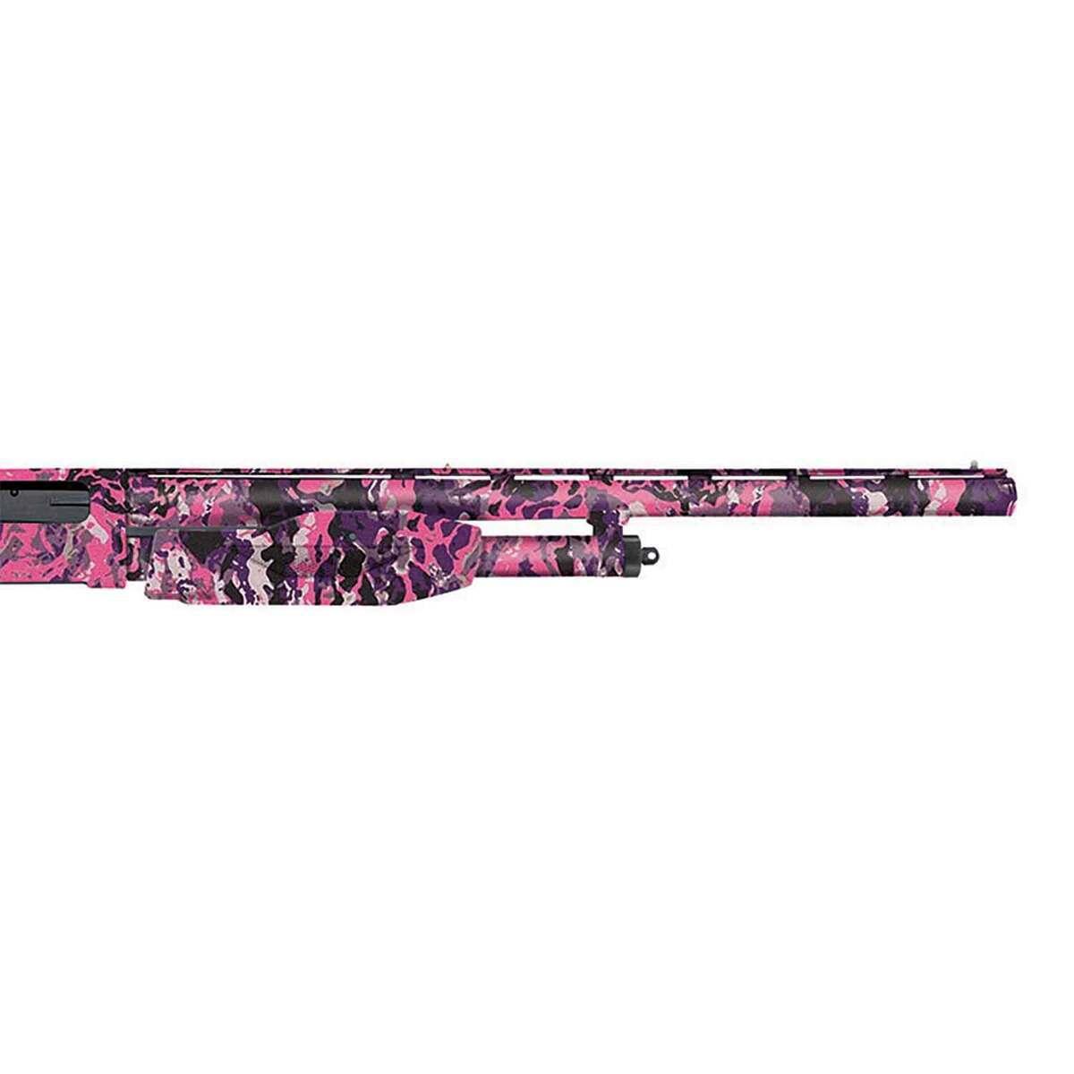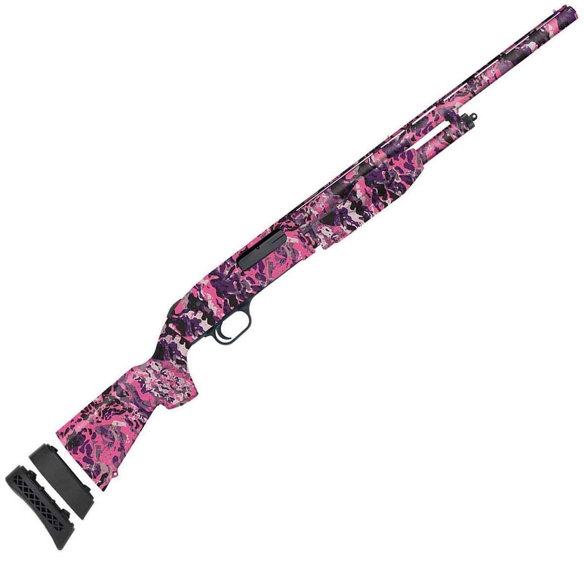 The Mossberg 510 Mini Super Bantam is a compact and lightweight 20 Gauge pump-action shotgun with an 18.5-inch vent rib barrel and Muddy Girl Wild Camo finish. Designed for beginner shooters or those preferring a smaller profile, it features dual bead sights for enhanced target acquisition and an adjustable length of pull for a customizable fit. Ideal for sporting use, this firearm is both versatile and reliable.