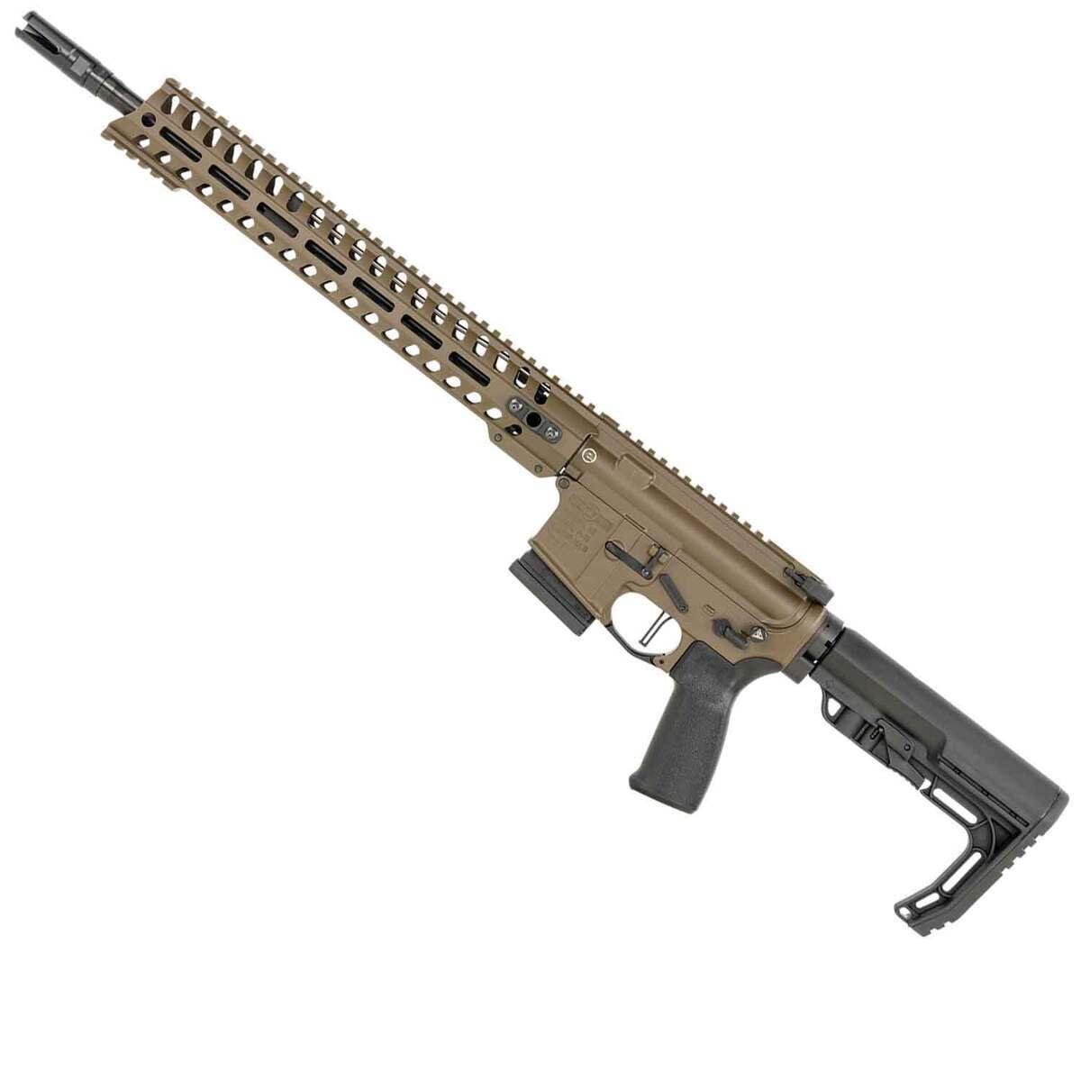 The POF Minuteman P-15 is a lightweight and reliable semi-automatic sporting rifle chambered in 5.56mm NATO, featuring a 16.5-inch barrel and a Patriot Brown Cerakote finish. Designed with E2 dual-extraction technology and a mil-spec aluminum anti-tilt buffer tube, it ensures optimal functionality and bolt carrier support. With black MFT grips and an optic-ready design, this versatile rifle is built for top-tier performance in challenging conditions.