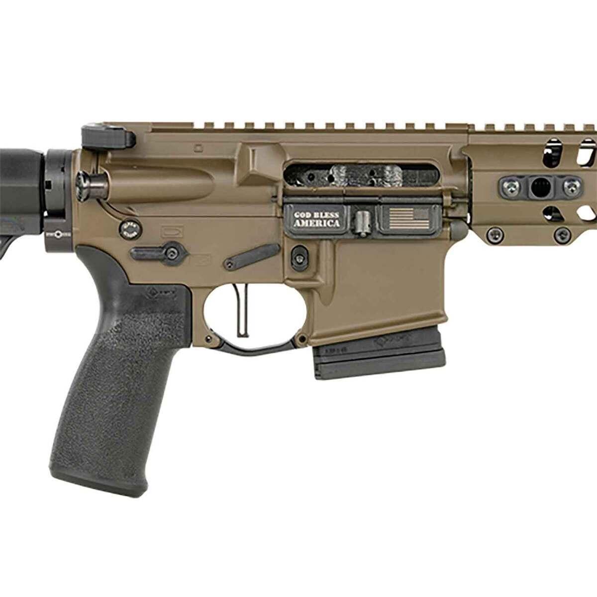 The Patriot Ordnance Factory Minuteman P-15 is a semi-automatic modern sporting rifle chambered in 5.56mm NATO with a 16.5-inch barrel and Patriot Brown Cerakote finish. Designed for reliability and lightweight maneuverability, this rifle incorporates POF’s innovative E2 dual-extraction technology, with four small channels in the chamber walls to assist in gas-driven case extraction. Built with a mil-spec aluminum anti-tilt buffer tube featuring carrier cradle extensions, the Minuteman ensures consistent bolt carrier support. This versatile, optic-ready carbine is equipped with black MFT grips and engineered to deliver superior performance in demanding environments.