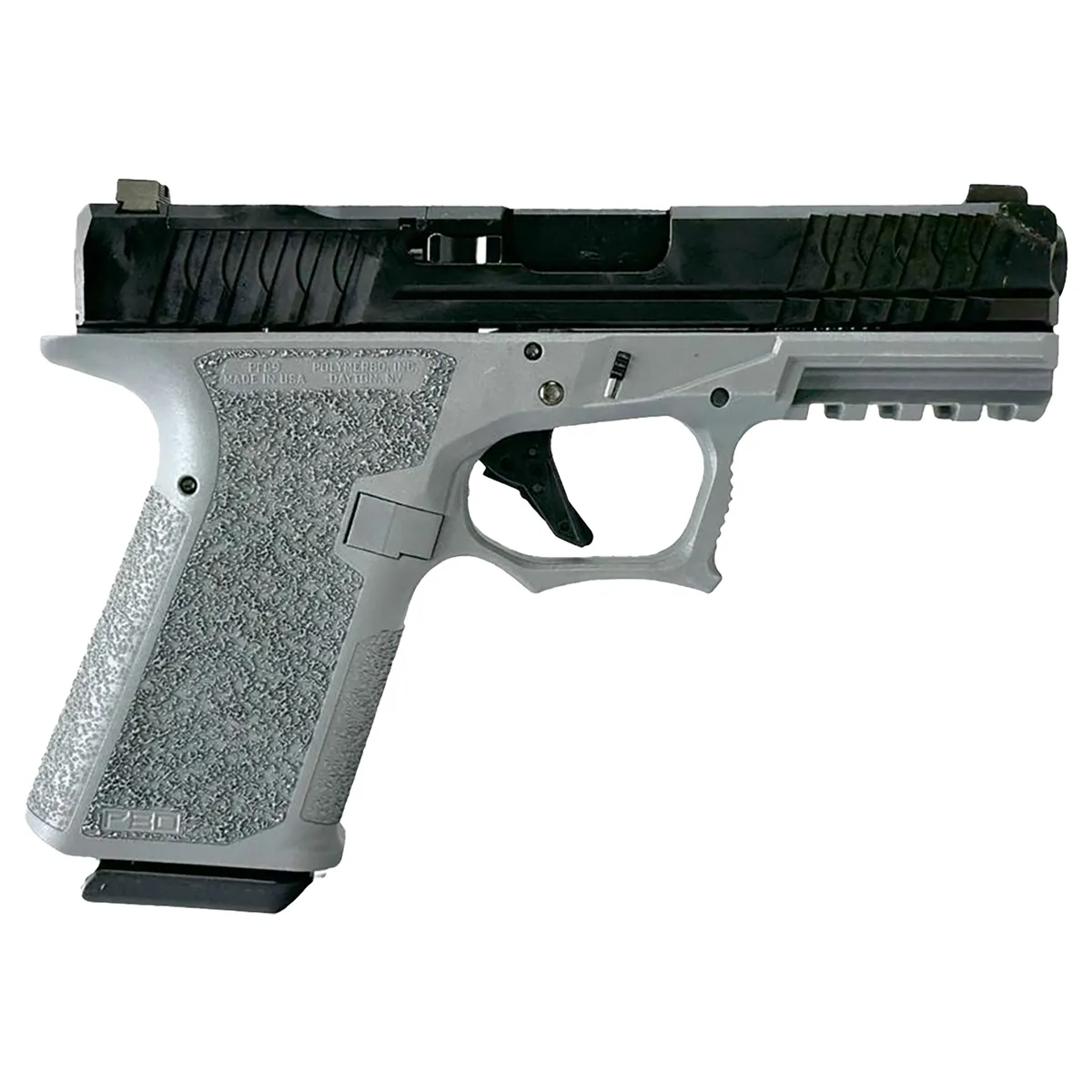 The Polymer80 PFC9 9mm Luger 3.9in Gray/Black Nitride Pistol delivers top-tier innovation in ergonomics and features, offering unparalleled shoot-ability and comfortable concealment. Its high-strength reinforced polymer frame boasts aggressive texturing on the sides, front, and backstrap for an exceptional grip in diverse environments. The complete slide design features front and rear serrations and clean modern lines, along with a heavy front chamfer for easy manipulation, smooth holstering, and a sleek aesthetic profile.