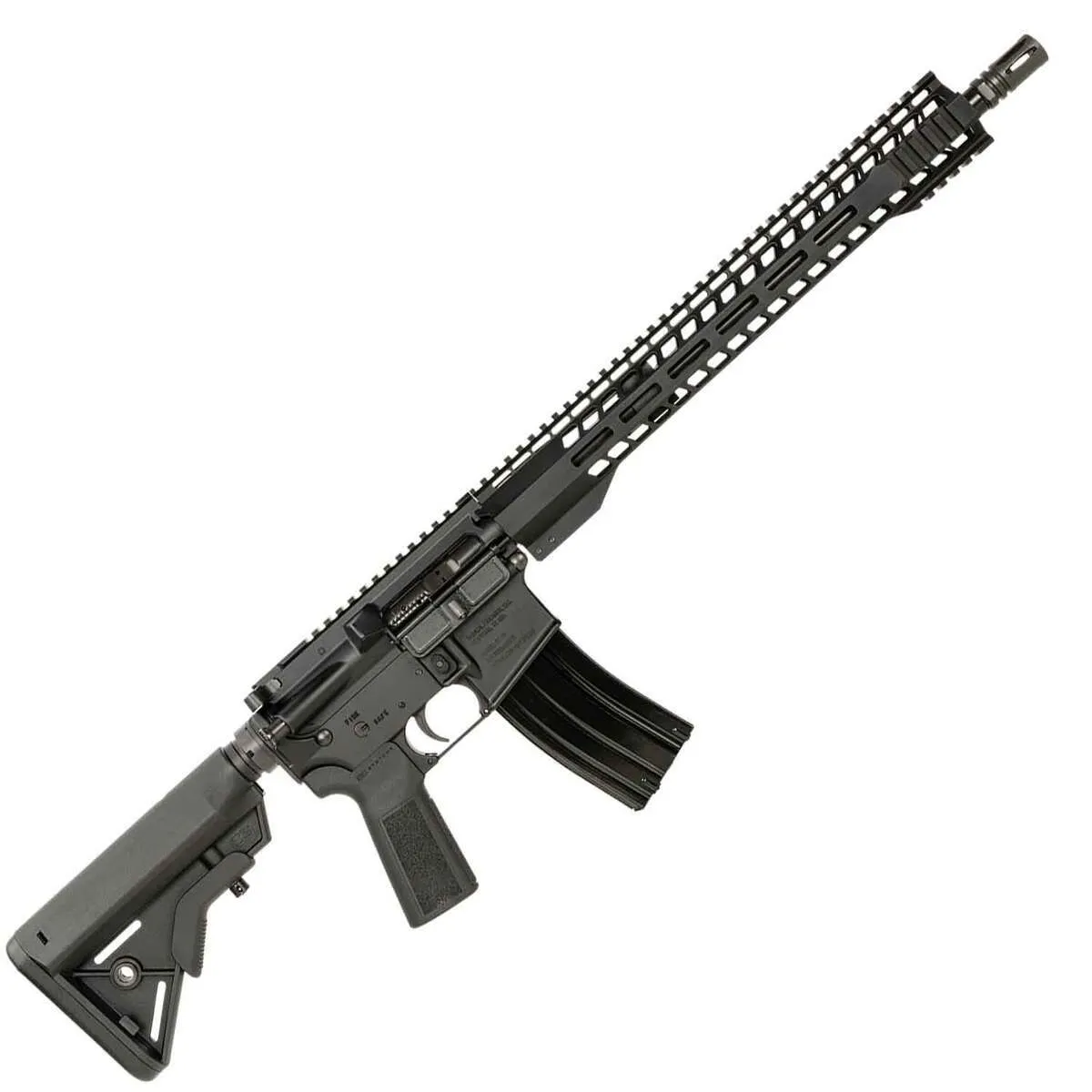 The Radical Firearms FR-16 chambered in .300 AAC Blackout is a semi-automatic modern sporting rifle designed for reliability and performance. It features forged 7075 T6 aluminum receivers, a durable 16-inch SOCOM profile barrel with Melonite coating, and a mid-length gas system for smoother cycling. The rifle is equipped with a Radical Firearms SHR M-LOK 15-inch free-float handguard, optimizing accuracy and providing ample accessory space. Its 4140 chrome moly vanadium barrel boasts a 1:8 twist rate and a .750 low profile gas block, complemented by an A2 flash hider for reduced muzzle flash. Additionally, it includes a B5 Type 23 pistol grip and a B5 6-position Bravo adjustable stock for ergonomic comfort and customization. This optic-ready rifle is an excellent choice for enthusiasts looking for precision, durability, and versatility.