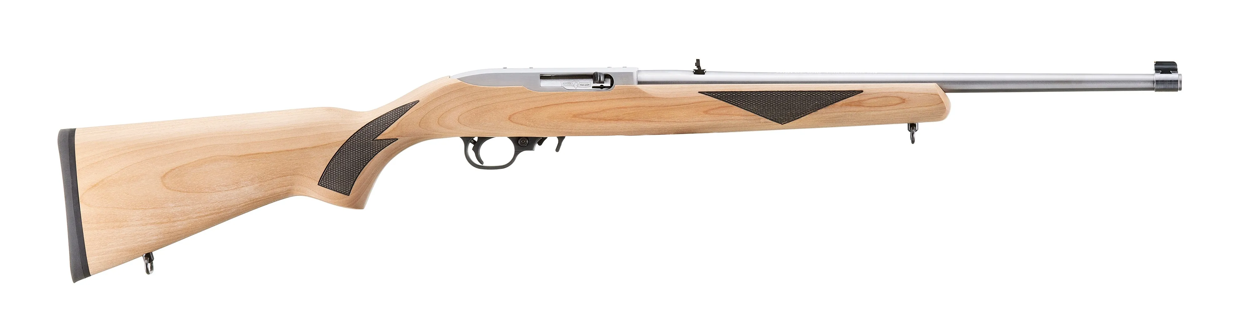 The Ruger 10/22 Sporter is a classic semi-automatic rimfire rifle chambered in 22 LR, designed for reliability and precision. Featuring an 18.5-inch stainless steel barrel, a natural-finish hardwood stock, and a compact 37-inch overall length, this rifle offers a perfect blend of durability and aesthetics. Equipped with adjustable rear sights and a gold bead front sight, the 10/22 Sporter ensures accurate target acquisition. Additional features include engraved 75th-anniversary bolt markings, sling swivels, and black laser checkering on the stock. Ideal for target shooting and small game hunting, this iconic rifle is a testament to Ruger’s legacy in firearms craftsmanship.