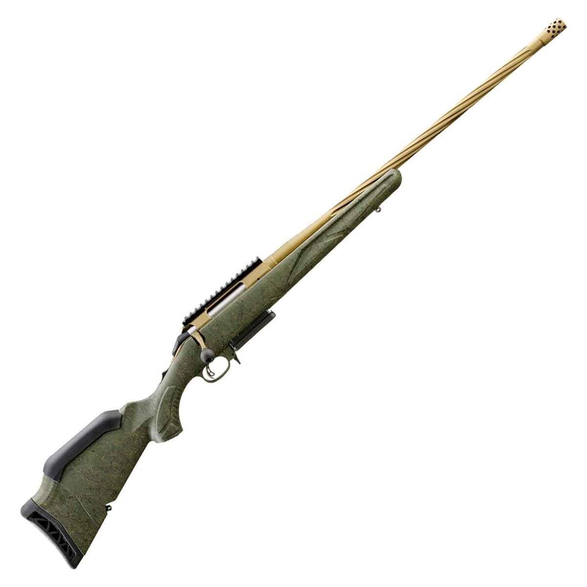 The Ruger American Predator Rifle Gen II chambered in 243 Win is a precision bolt-action rifle designed for hunting and shooting enthusiasts. Featuring a 22-inch spiral fluted barrel with a threaded muzzle (5/8×24), this rifle offers superior accuracy and customization options. The Green Splatter Gen II synthetic stock provides durability and a modern appearance, while the Burnt Bronze Cerakote finish ensures corrosion resistance. Equipped with an oversized bolt handle, steel sling swivel studs, and a Picatinny scope base, this rifle combines reliability and functionality for a seamless shooting experience.