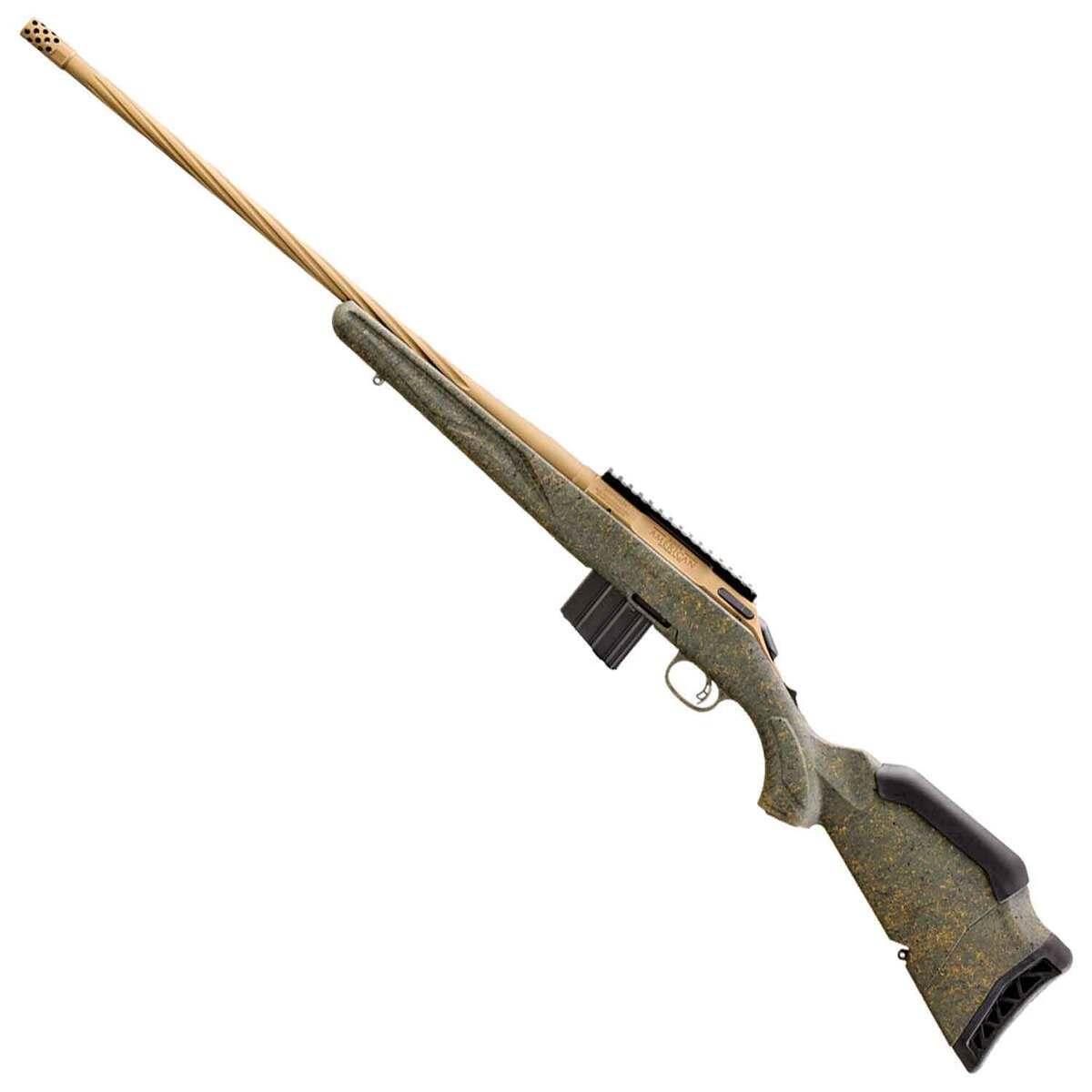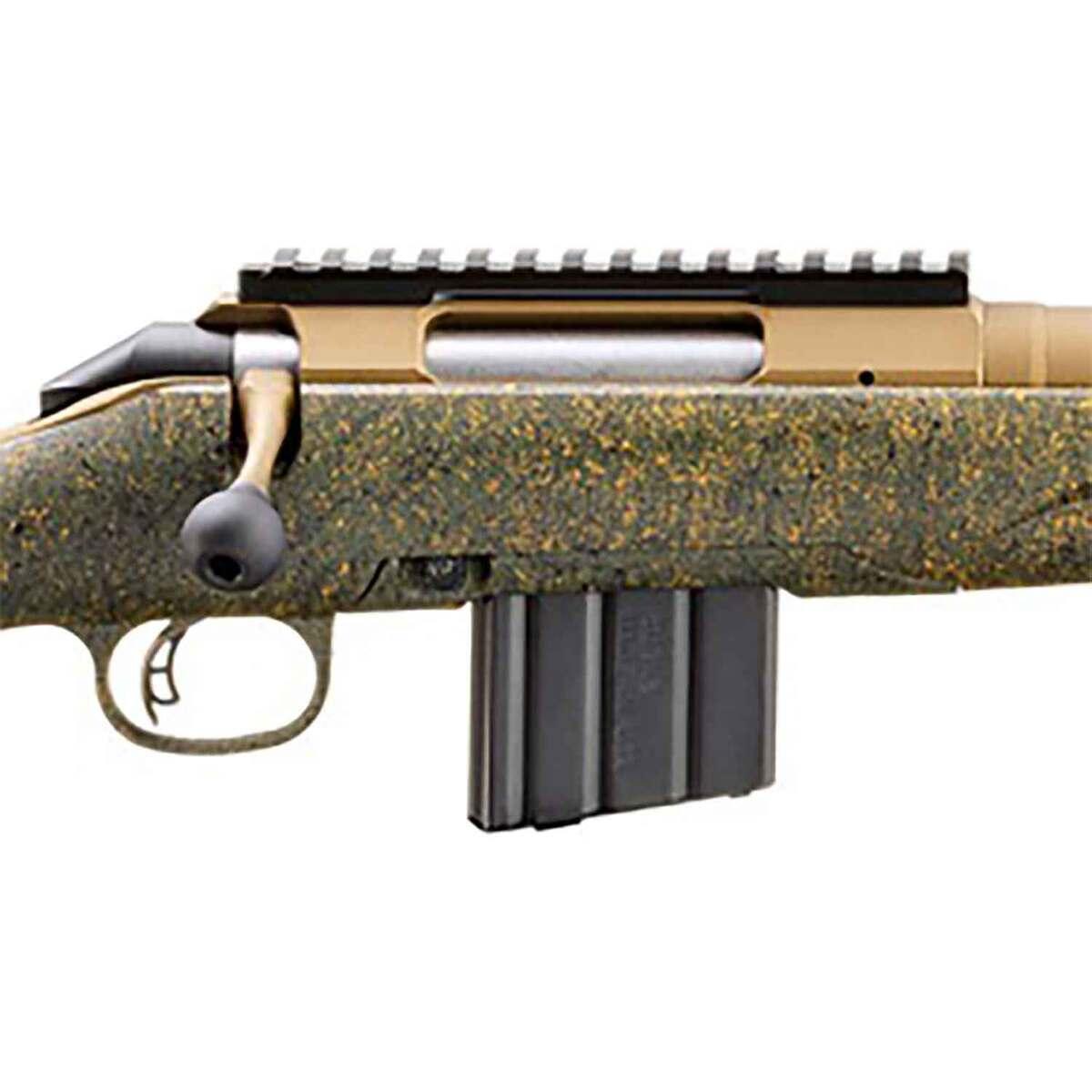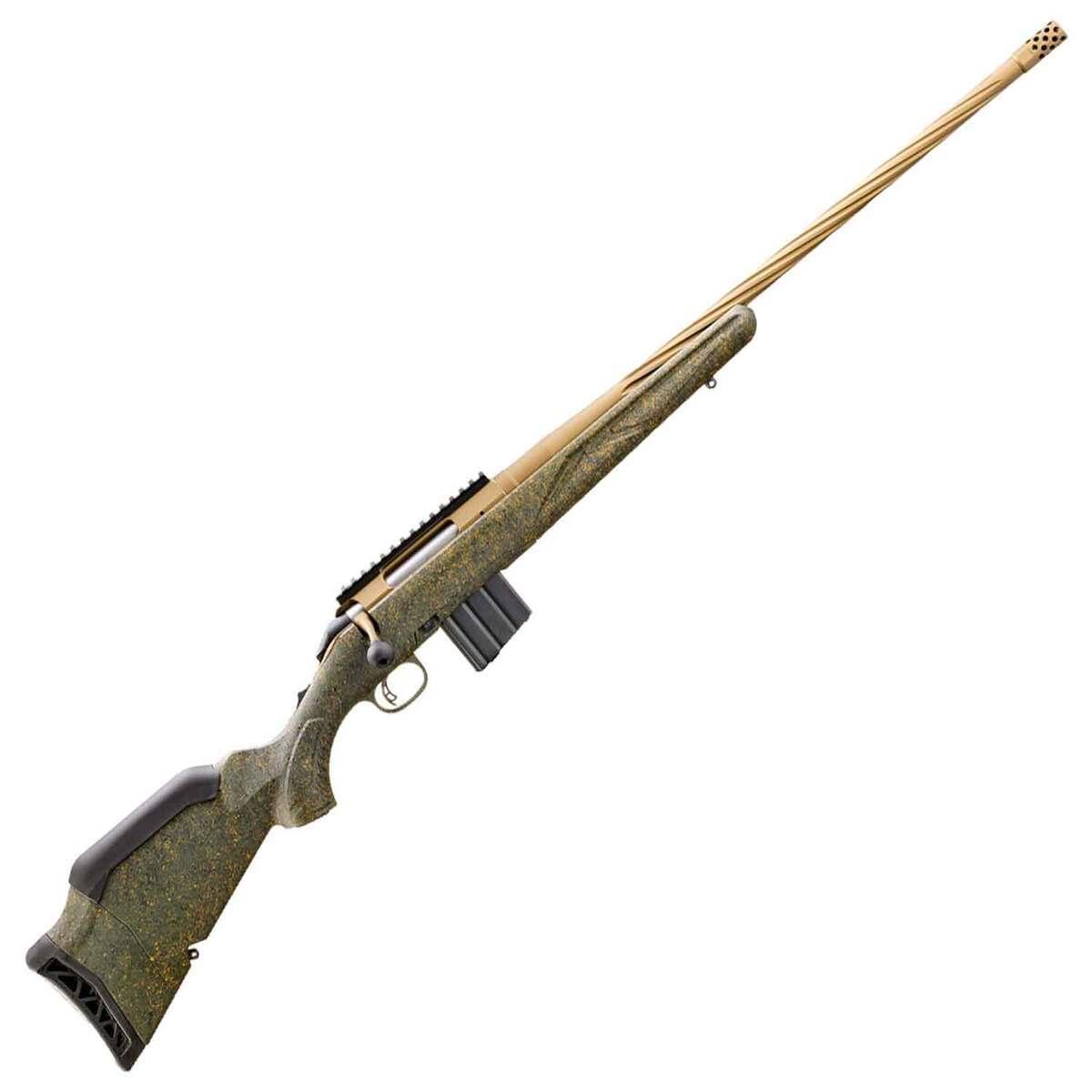 The Ruger American Predator Rifle Gen II in 350 Legend delivers precision and reliability for hunting and tactical shooting. Designed as part of the renowned American Rifle Series, this bolt-action rifle features a 22-inch threaded barrel with a 1/2×28 thread pattern, an oversized bolt handle, and a Picatinny scope base for effortless optics attachment. The synthetic stock with green splatter accents demonstrates a perfect balance of ergonomic design and rugged aesthetics, while the Burnt Bronze Cerakote finish enhances its durability and corrosion resistance. Weighing just 6.5 pounds and boasting a 5+1 capacity, this rifle is engineered for comfort, accuracy, and adaptability in field conditions. Manufactured in the USA, the Predator Gen II merges advanced functionality with exceptional build quality for modern shooters.