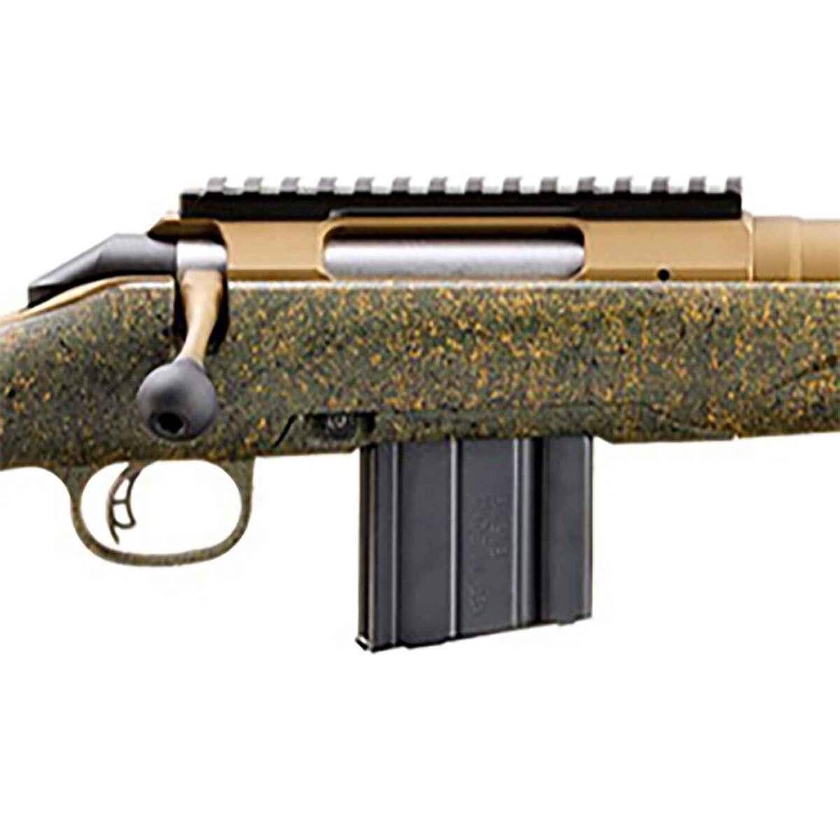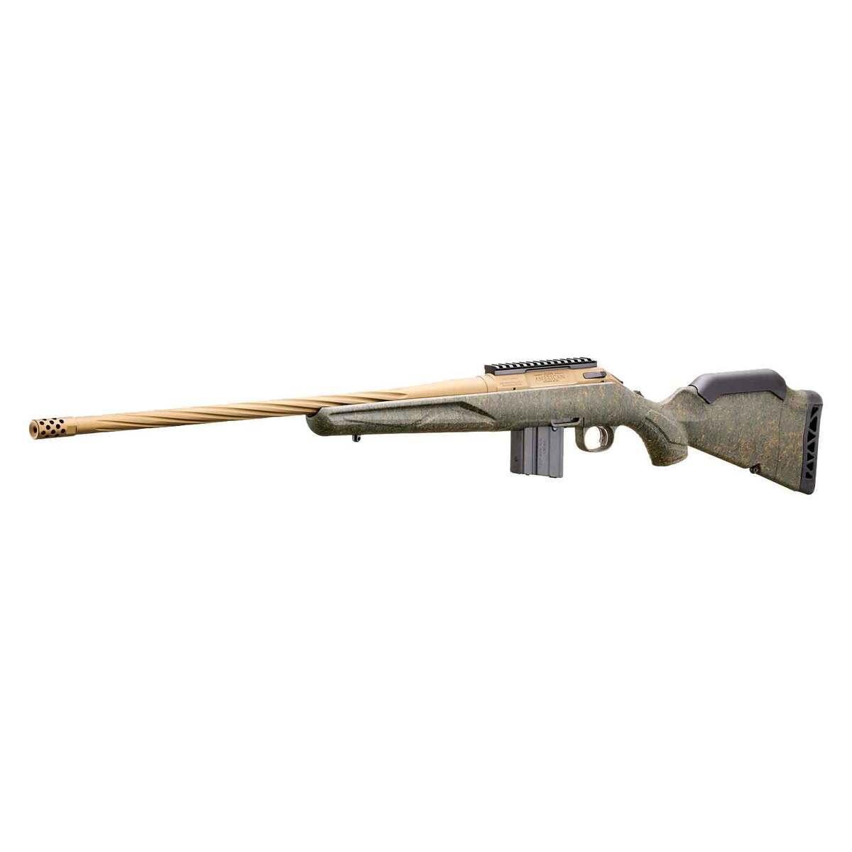 The Ruger American Predator Rifle Gen II, chambered in 6.5 Grendel, is a precision-focused bolt-action rifle designed for hunters and target shooters seeking accuracy and dependability. Featuring a 22-inch threaded barrel with a rate of twist of 1-in-8 inches, this rifle ensures exceptional performance with a variety of ammunition. The synthetic Green Splatter Gen II stock offers durability and an appealing tactical aesthetic. Its oversize bolt handle, steel sling swivel studs, and Picatinny scope base provide versatility and customization options for optics and attachments. With a capacity of 10+1 rounds and a Burnt Bronze Cerakote finish, this rifle delivers power, reliability, and style, making it ideal for long-range shooting and predator control.