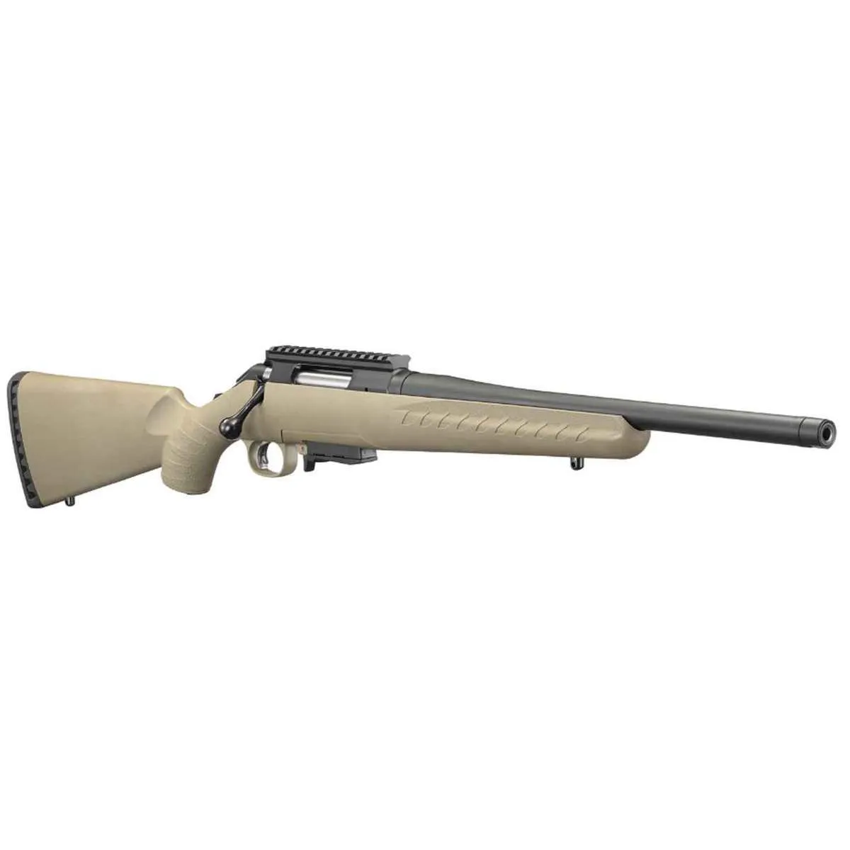 The Ruger American Ranch Rifle in 7.62 x 39mm is a reliable and versatile bolt-action rifle designed for durability and precision. Featuring a 16-inch threaded barrel, FDE-Flat Dark Earth composite synthetic stock, and Ruger Marksman Adjustable Trigger, this rifle offers superior performance for a wide range of applications. With a lightweight design and one-piece aluminum scope rail, it is ideal for hunting, target shooting, or general outdoor use. Perfectly suited for enthusiasts seeking a compact, rugged, and highly functional firearm.