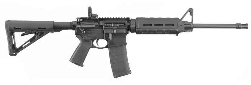 The Ruger AR-556 is a versatile semi-automatic rifle chambered in .223 Remington and 5.56 NATO, perfect for sports shooting, hunting, and tactical applications. Featuring a 16.10-inch barrel with a 1-in-8 twist rate, this rifle is precision-engineered for outstanding accuracy and reliability. It is equipped with Magpul MOE furniture, including a 6-position collapsible stock and an M-LOK handguard for customizable accessory mounting. The black hard coat anodized finish ensures durability, while the forward assist, dust cover, and Ruger flash suppressor add to its operational effectiveness. With a lightweight design of 6.5 lbs. and a 30-round capacity Magpul PMAG, the AR-556 offers exceptional performance in a compact and user-friendly package.