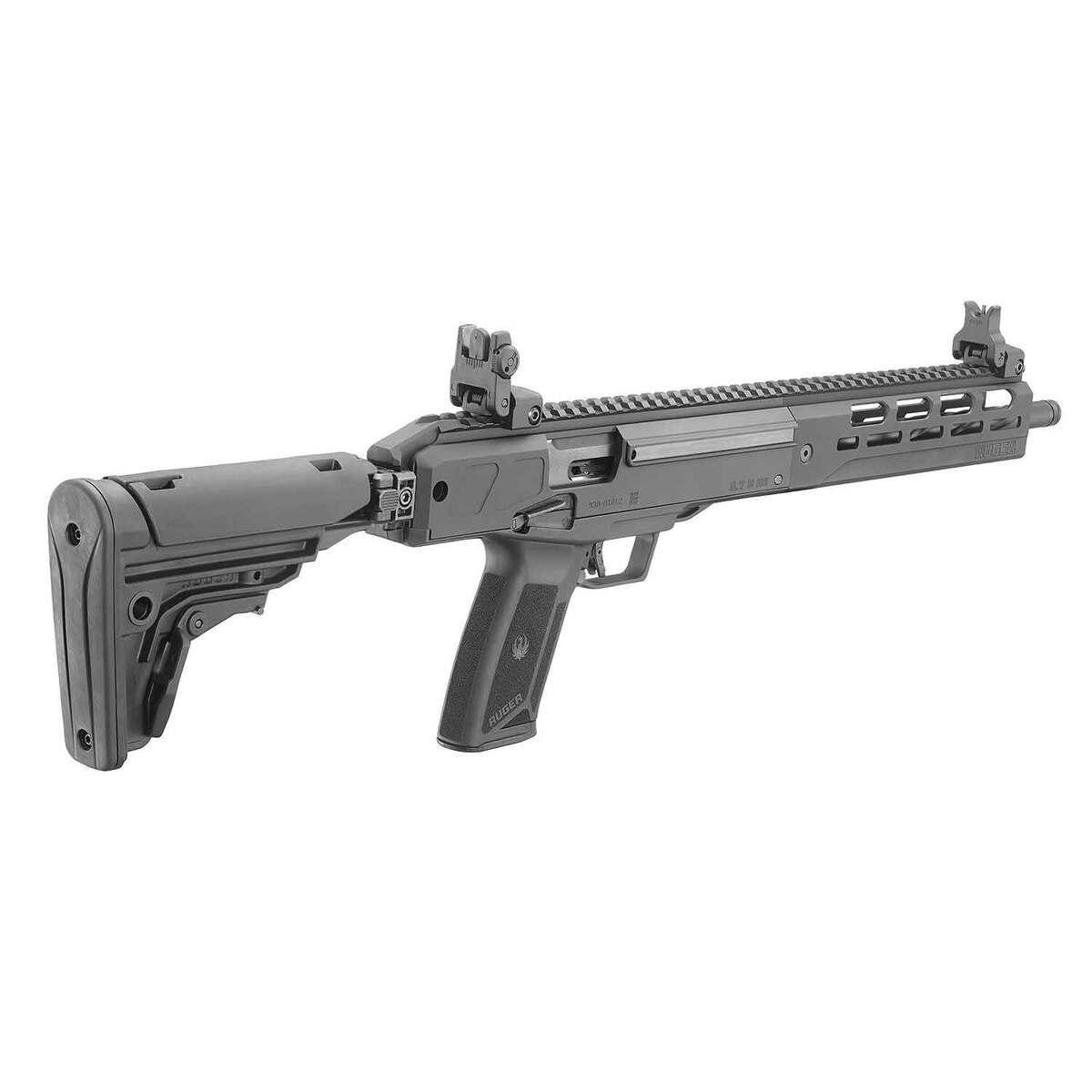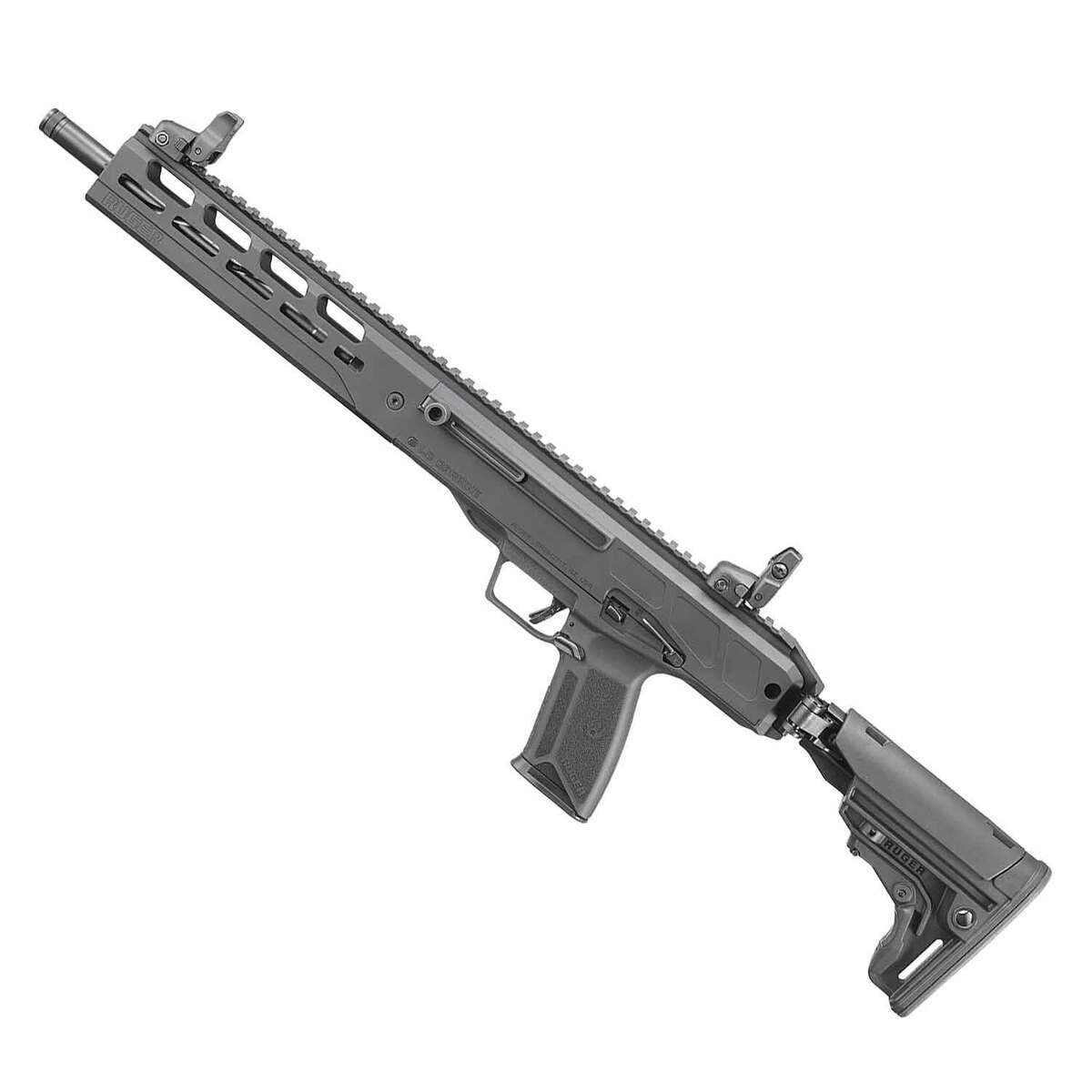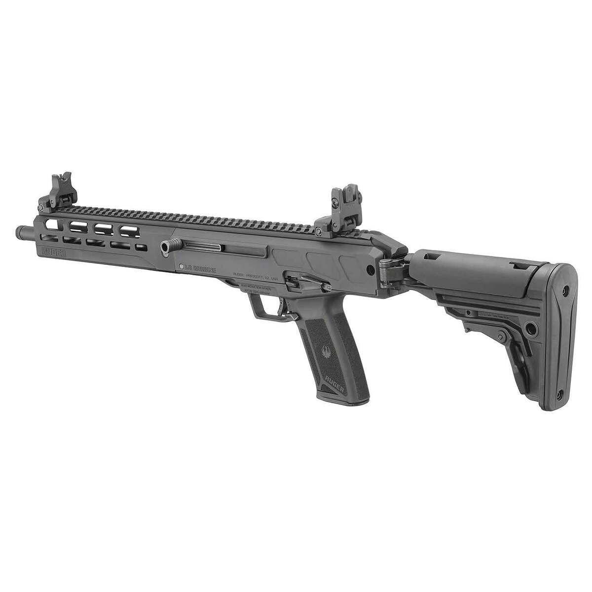 The Ruger LC Carbine 5.7x28mm Semi Automatic Modern Sporting Rifle offers exceptional performance in a lightweight and compact design, weighing under 6 lbs. Featuring a 16.25-inch fluted, nitride-treated steel barrel, it ensures strength, accuracy, and longevity. The rifle includes a threaded barrel with a thread protector to accommodate muzzle accessories like brakes, flash hiders, and suppressors. The reversible, folding stock with adjustable length of pull and collapsible sights make it ideal for compact storage. Ergonomics are enhanced with ambidextrous controls, including the manual safety, charging handle, bolt release, and extended magazine release latch. Additionally, the CNC-milled handguard with M-LOK accessory slots and multiple QD sling sockets provides maximum durability and versatility. Its Secure Action fire-control system ensures reliable and safe operation through a protected internal hammer, bladed-safety trigger, and robust safety features. Ruger Rapid Deploy folding sights are adjustable for windage and elevation, while the full-length Picatinny rail allows for optic mounting. Perfectly suited for precision shooting and recreational use, this rifle utilizes the same steel magazines and ergonomic controls as the Ruger-5.7 pistol for seamless compatibility.