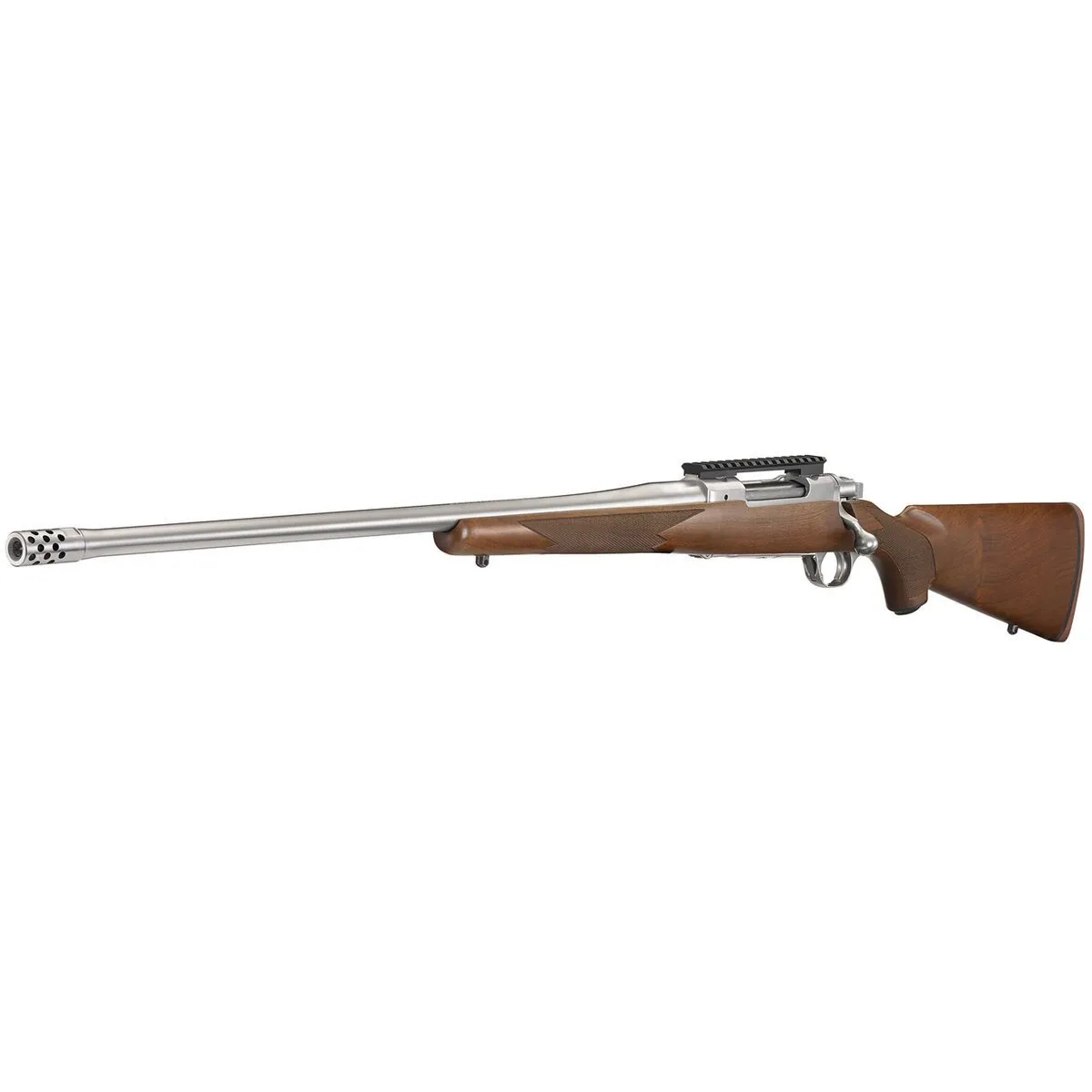 The Ruger Hawkeye Hunter Left Hand Bolt Action Rifle in 300 Winchester Magnum offers precision, reliability, and versatility for hunters and shooting enthusiasts alike. Designed with a Mauser-type controlled round feed extractor and fixed blade-type ejector, this rifle ensures smooth cycling and secure extraction. Its ergonomic American Walnut stock with rounded contours complements the free-floating, cold hammer-forged stainless steel barrel featuring 5R rifling for superior accuracy. Additional highlights include the 20 MOA Picatinny optics rail, the LC6 trigger for crisp pulls, factory-installed thread protector, and rugged stainless steel bolt for durability. Perfectly suited for left-handed shooters, this firearm is built to deliver performance and reliability in the field.