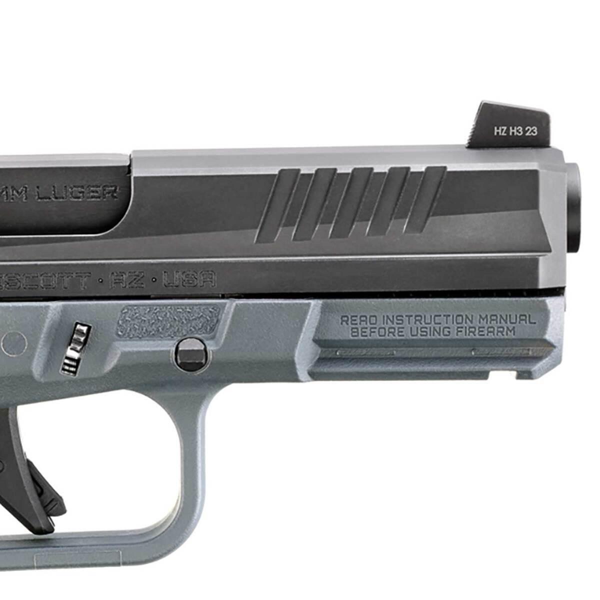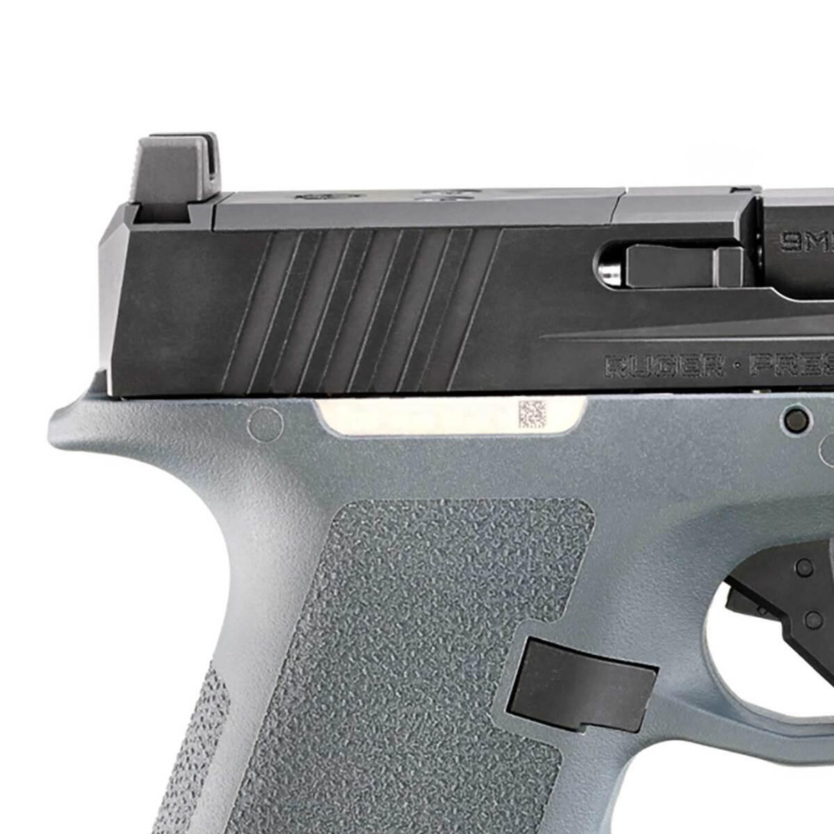 The Ruger RXM 9mm Luger 4in FNC Nitride/Gray Pistol is a striker-fired, American-made handgun designed for superior ergonomics and customization. It features a removable serialized stainless steel Fire Control Insert (FCI) housed within the interchangeable Magpul Enhanced Handgun Grip (EHG), providing flexibility for concealed carry and customization. With direct optic mounting compatibility for RMR, Delta Point Pro (DPP), and RMSc pattern optics, co-witness-height steel sights equipped with a tritium night front sight ensure optimal precision. Enhanced features such as an extended magazine release, raised slide stop, low-profile flared magazine well, and universal-pattern accessory rail elevate user performance, while safety measures include an integrated trigger safety and an inspection port for chamber status confirmation. The precision rifled alloy steel barrel with an FNC nitride finish ensures durability and reliability, making this firearm an excellent choice for personal defense and recreational shooting. Includes two Magpul PMAG 15 GL9 15-round magazines and a co-branded plastic carry case.