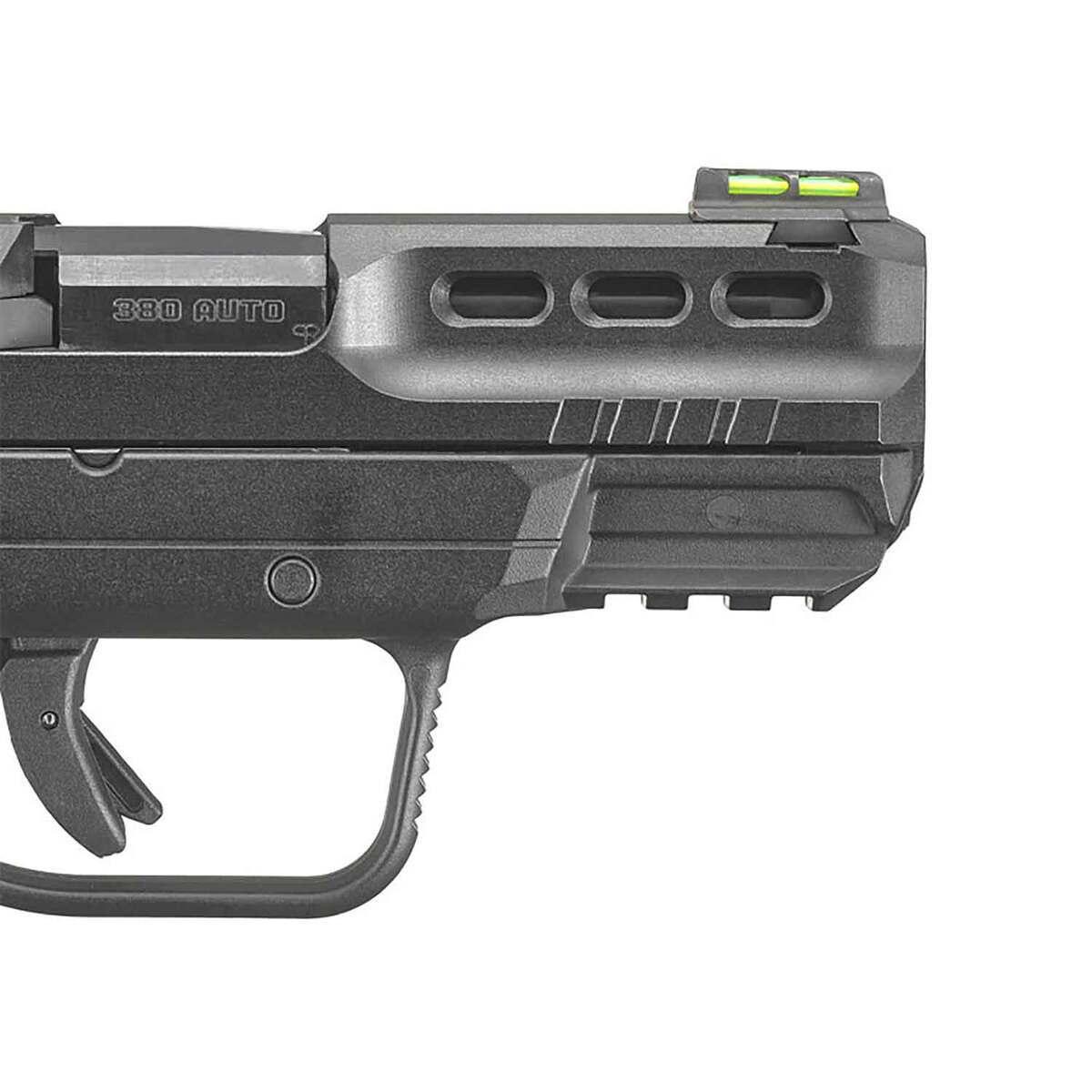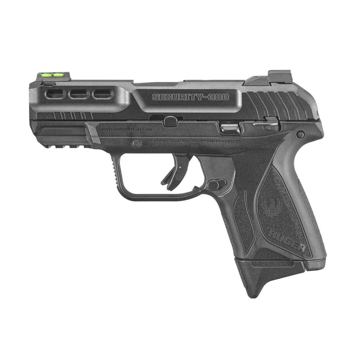 The Ruger Security-380 is a compact and lightweight semi-auto pistol optimized for ease of use and reliability, featuring the Lite Rack system for seamless slide manipulation. With a fiber optic front sight, adjustable rear sight, and textured polymer grip frame, it ensures accurate targeting and secure handling. Designed for concealed carry and self-defense, it boasts a durable black oxide finish, 10+1 round capacity, and an accessory rail for added versatility.