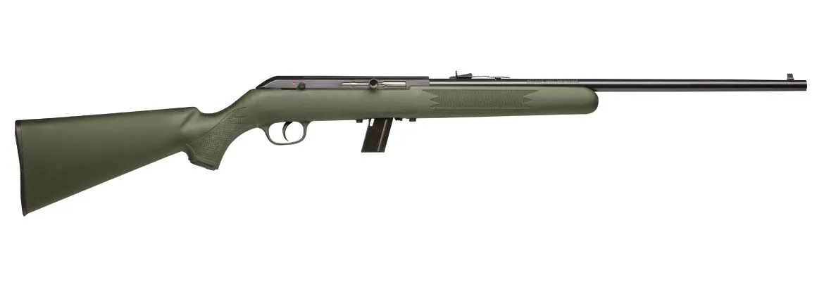 The Savage Arms 64 F is a reliable semi-automatic rifle chambered in 22 LR, designed for precision shooting and recreational use. Featuring a lightweight green synthetic Sporter stock and matte blue finish, this rifle offers durability and accuracy in a sleek design. With a 21-inch barrel and 10+1 capacity, the 64 F is equipped with open rifle sights for quick target acquisition, and its drilled and tapped receiver allows for easy mounting of optics. Perfect for target shooting, small game hunting, and training new shooters, the 64 F combines performance and versatility for enthusiasts of all skill levels.