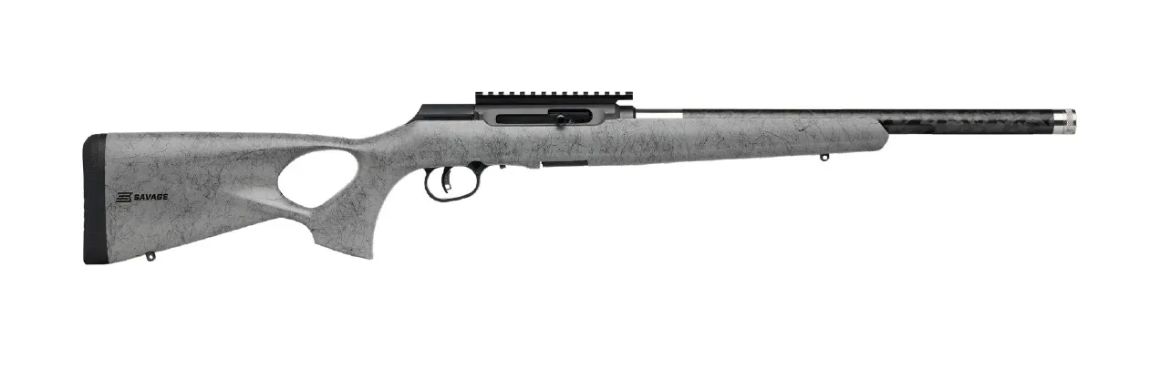 The Savage Arms A22 Timberlite Thumbhole is a precision-engineered semi-auto rifle chambered in 22 LR, designed for lightweight performance and superior handling. Featuring an 18-inch carbon fiber-wrapped barrel, a sleek satin blue finish, and a synthetic grey/black web thumbhole stock, this rifle offers enhanced accuracy and durability. The A22 Timberlite includes a 10-round rotary magazine, 20 MOA Picatinny rail, and Savage’s renowned AccuTrigger for precise, adjustable trigger control. Built to excel in the field, this versatile rifle is perfect for shooters seeking reliability and performance in every shot.