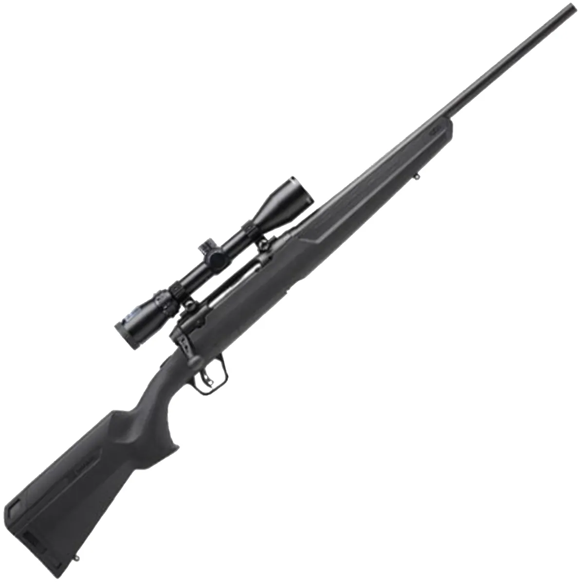 The Savage Arms Axis II XP Compact Scoped Bolt Action Rifle in 243 Winchester is designed for young and smaller framed shooters. The rifle features a 20-inch button-rifled barrel, a detachable box magazine, and the user-adjustable AccuTrigger for precise trigger pull adjustments. It comes with a factory-mounted Bushnell Banner 3-9x40mm scope, ready for action straight out of the box. This lightweight and durable rifle is built with a custom synthetic stock and smooth bolt action, ensuring comfort and reliability for target shooters and hunters alike.