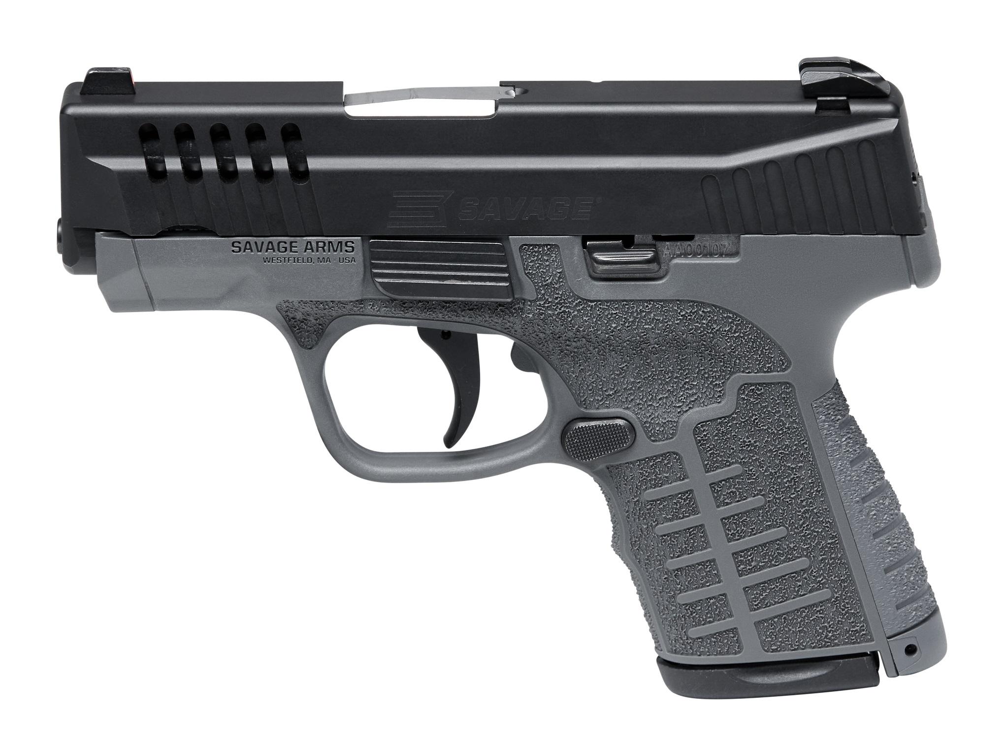 The Savage Arms Stance MC9 is a compact and reliable striker-fired semi-auto pistol chambered in 9mm. Featuring a durable matte black finish and equipped with TruGlo Night Sights for increased visibility in low-light conditions, this handgun is designed for personal defense and concealed carry. Its ergonomic gray polymer frame includes interchangeable back straps for a tailored grip, while ambidextrous magazine and slide catches provide versatility for both left- and right-handed shooters. With an internal chassis for enhanced structural integrity and a lightweight design weighing just 1.375 lbs., the Stance MC9 offers a perfect balance of performance, comfort, and portability.