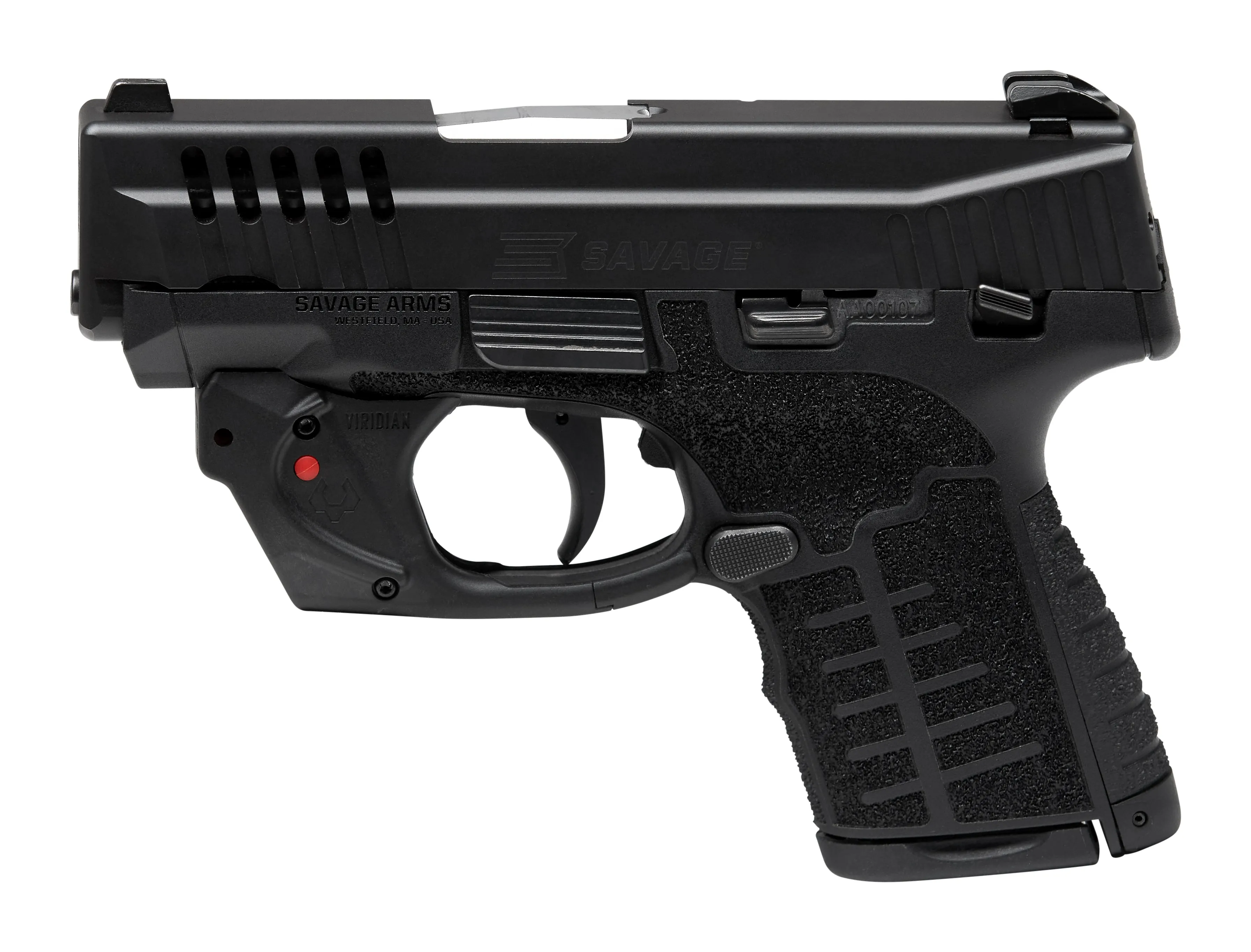 The Savage Arms Stance MC9MS is a compact, striker-fired semi-auto pistol designed for reliability, performance, and user customization. Chambered in 9mm, it features a durable matte black finish, a 3.2-inch barrel, and an ergonomic black polymer grip with interchangeable back straps for a tailored fit. This pistol boasts a lightweight internal chassis, ambidextrous magazine and slide catch controls, and fixed 3-dot sights for rapid target acquisition. With an 8+1 capacity and a slim, carry-friendly profile, the Stance MC9MS is ideal for everyday carry and personal defense applications.
